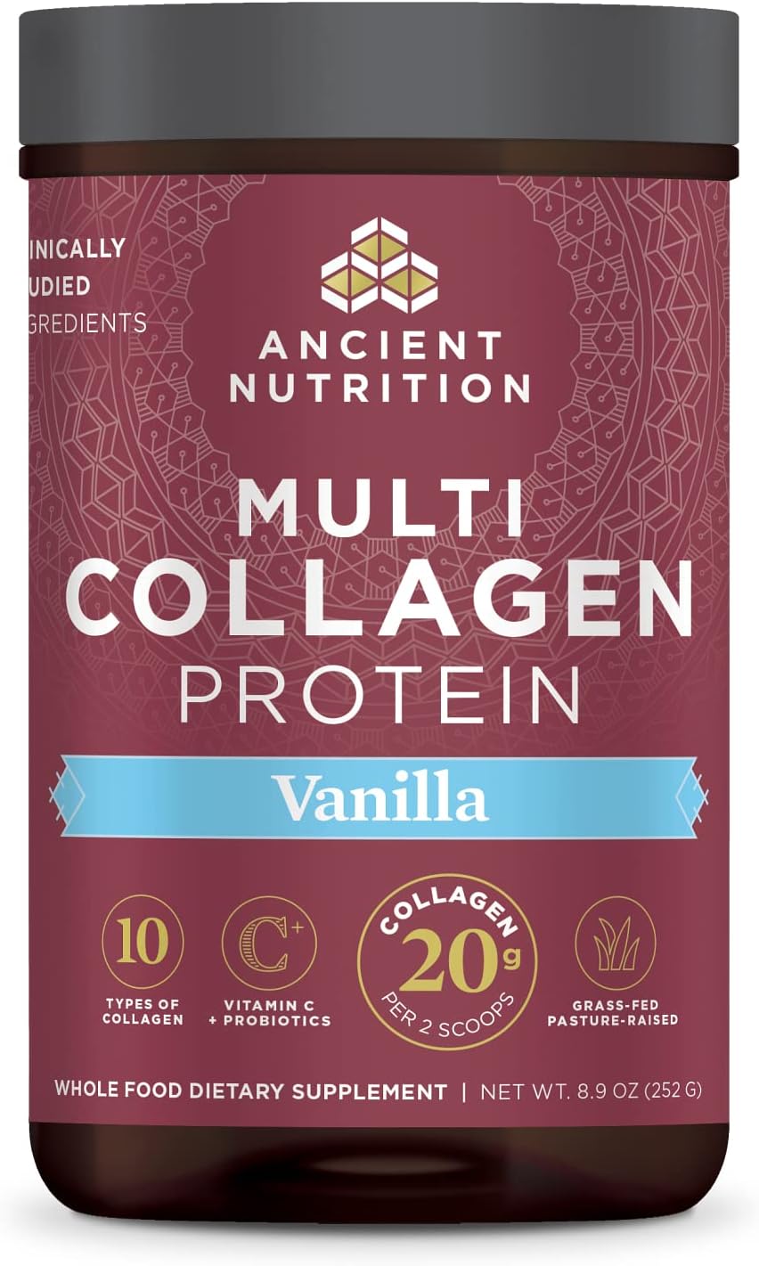 Ancient Nutrition Hydrolyzed Collagen Peptides Powder With Probiotics, Vanilla Multi Collagen Protein For Women And Men With Vitamin C, 24 Servings, Supports Skin And Nails, Gut Health, 8.9Oz