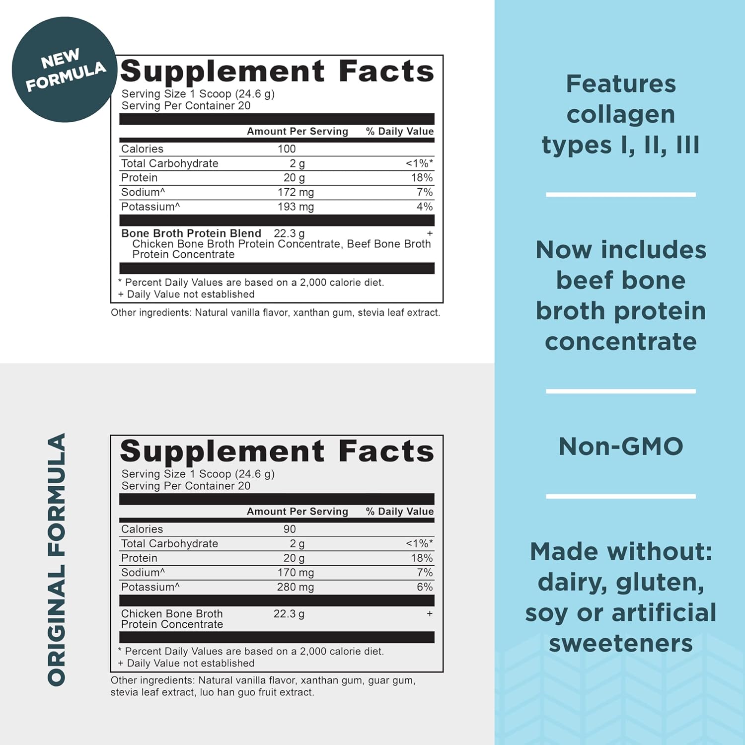 Ancient Nutrition Protein Powder Made From Real Chicken And Beef Bone Broth, Vanilla, 20G Protein Per Serving, 20 Serving Tub, Gluten Free Hydrolyzed Collagen Peptides Supplement