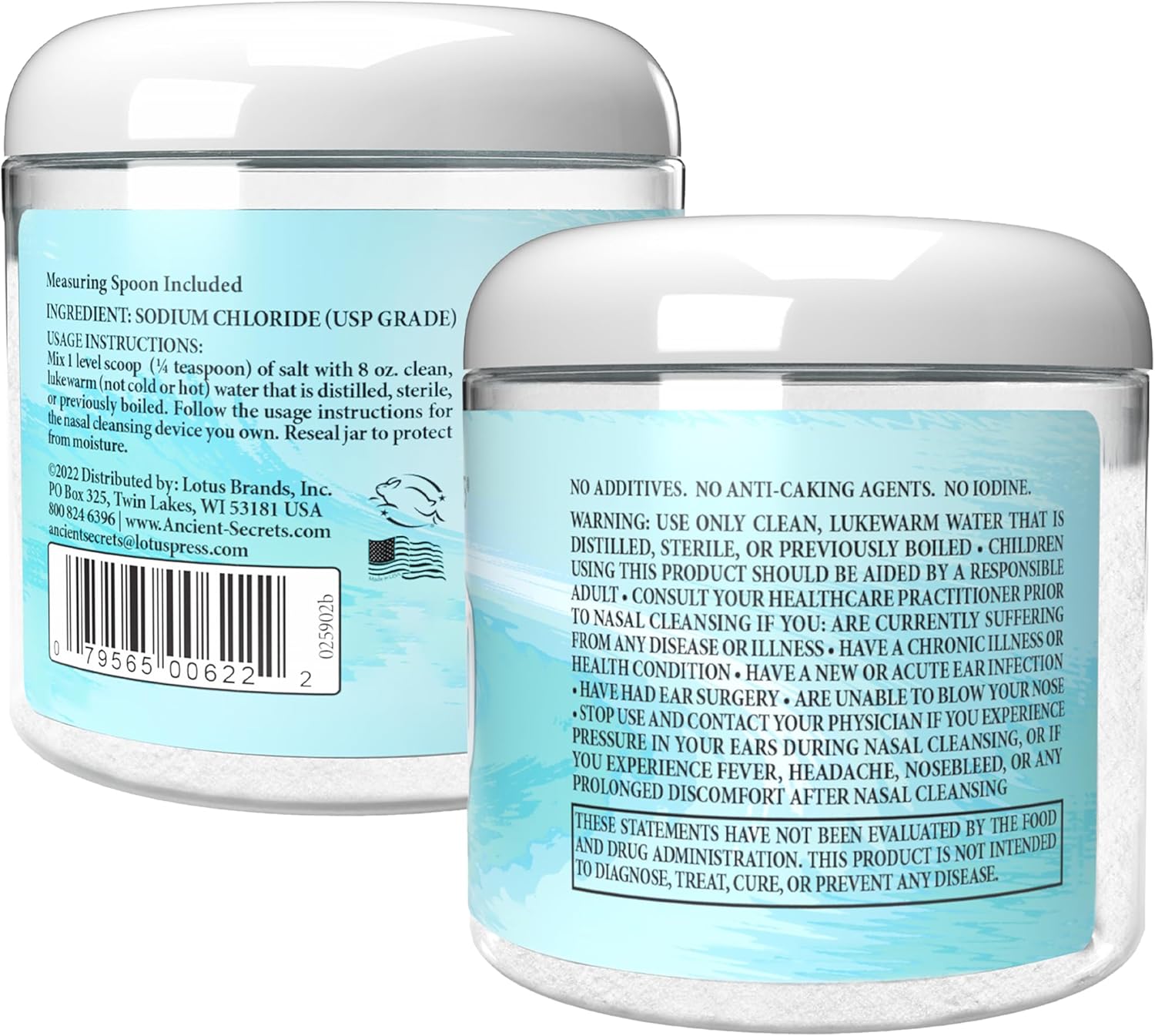 Ancient Secrets Nasal Cleansing Salt, Non-Iodized, 3-Pack β Usp-Grade Sodium Chloride For Any Neti Pot, Sinus Irrigation System, 10 Oz Ea