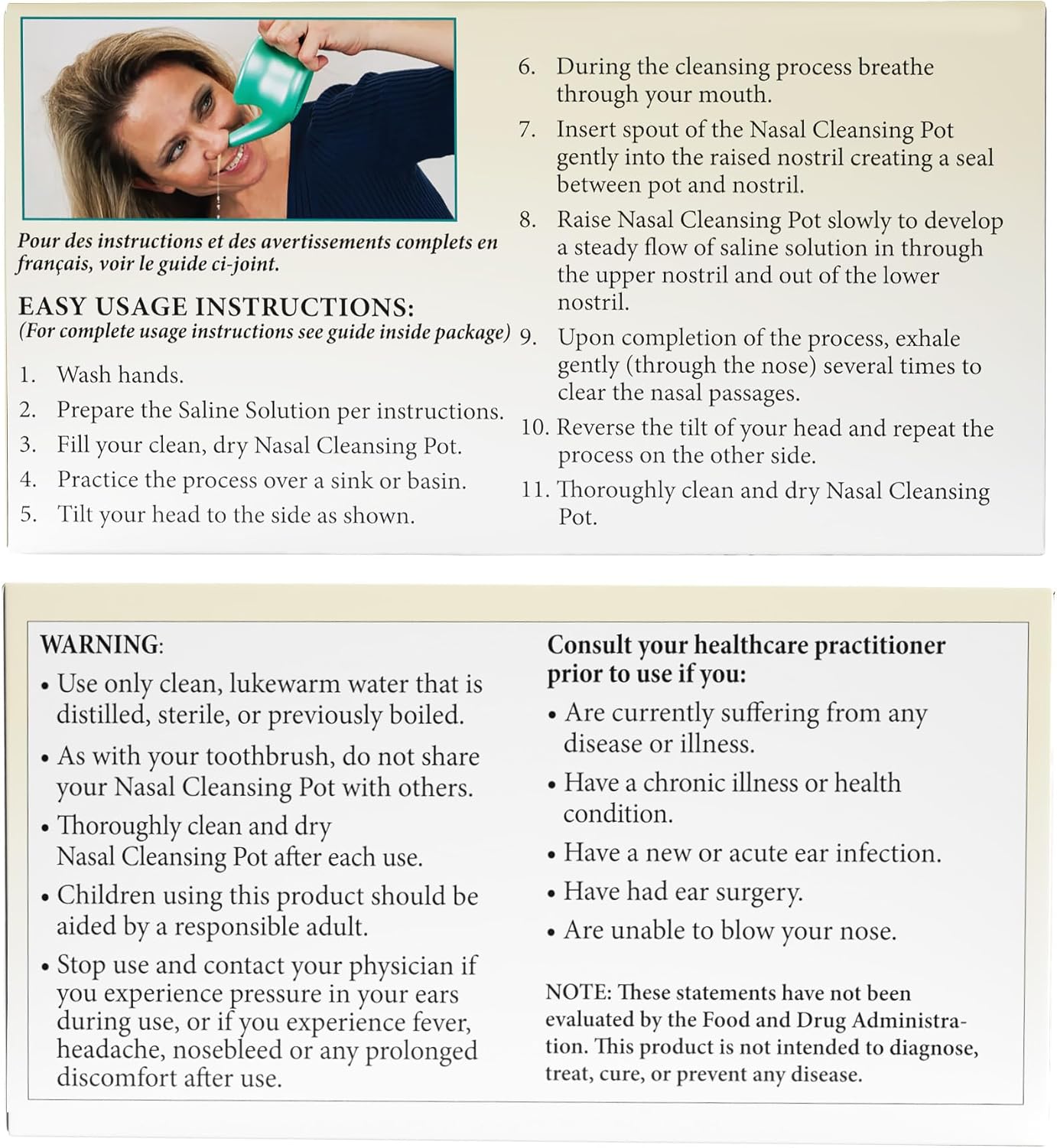 EASY-TO-USE NASAL IRRIGATION SYSTEM: The step-by-step illustrated instructions make it easy to use the Ancient Secrets Nasal Cleansing Pot. Pre-measured Nasal Cleansing Salt packets are included