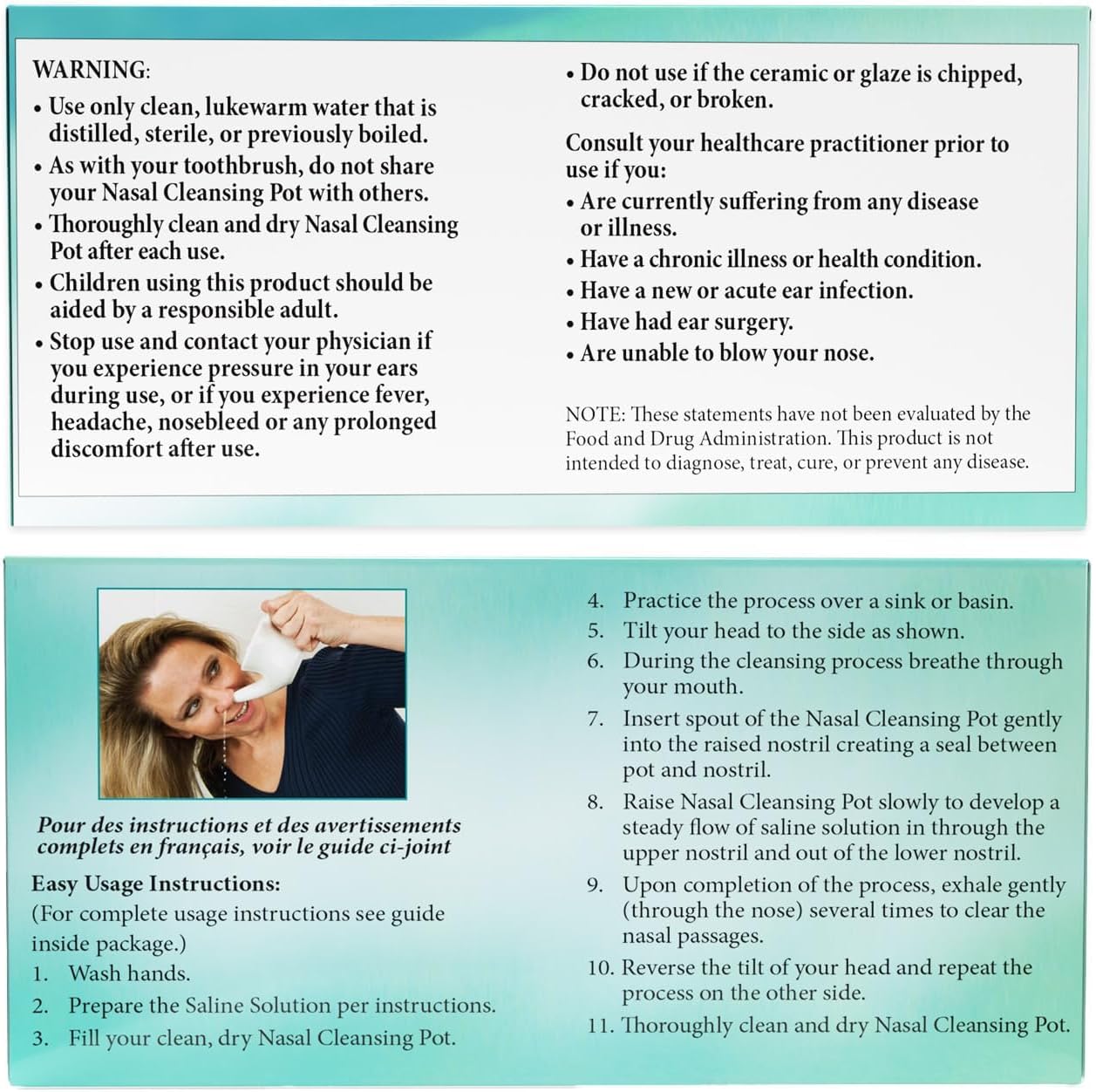 Ancient Secrets Neti Pot Sinus Rinse + Pre-Measured Cleansing Salt Pack β Dishwasher-Safe Ceramic Model, Patented Ergonomic No-Leak Design, Nasal Cleansing Pot, Nasal Irrigation