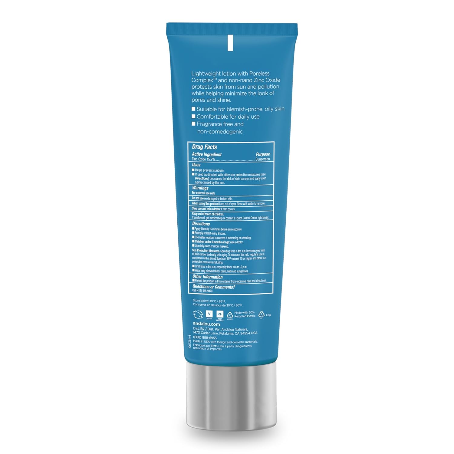 Andalou Naturals Daily Shade Face Sunscreen, Spf 30 Zinc Oxide Mineral Sunscreen, Sun + Pollution Defense Face Lotion, Helps Minimize Look Of Pores, Matte Finish & Lightweight - 2.7 Fl. Oz
