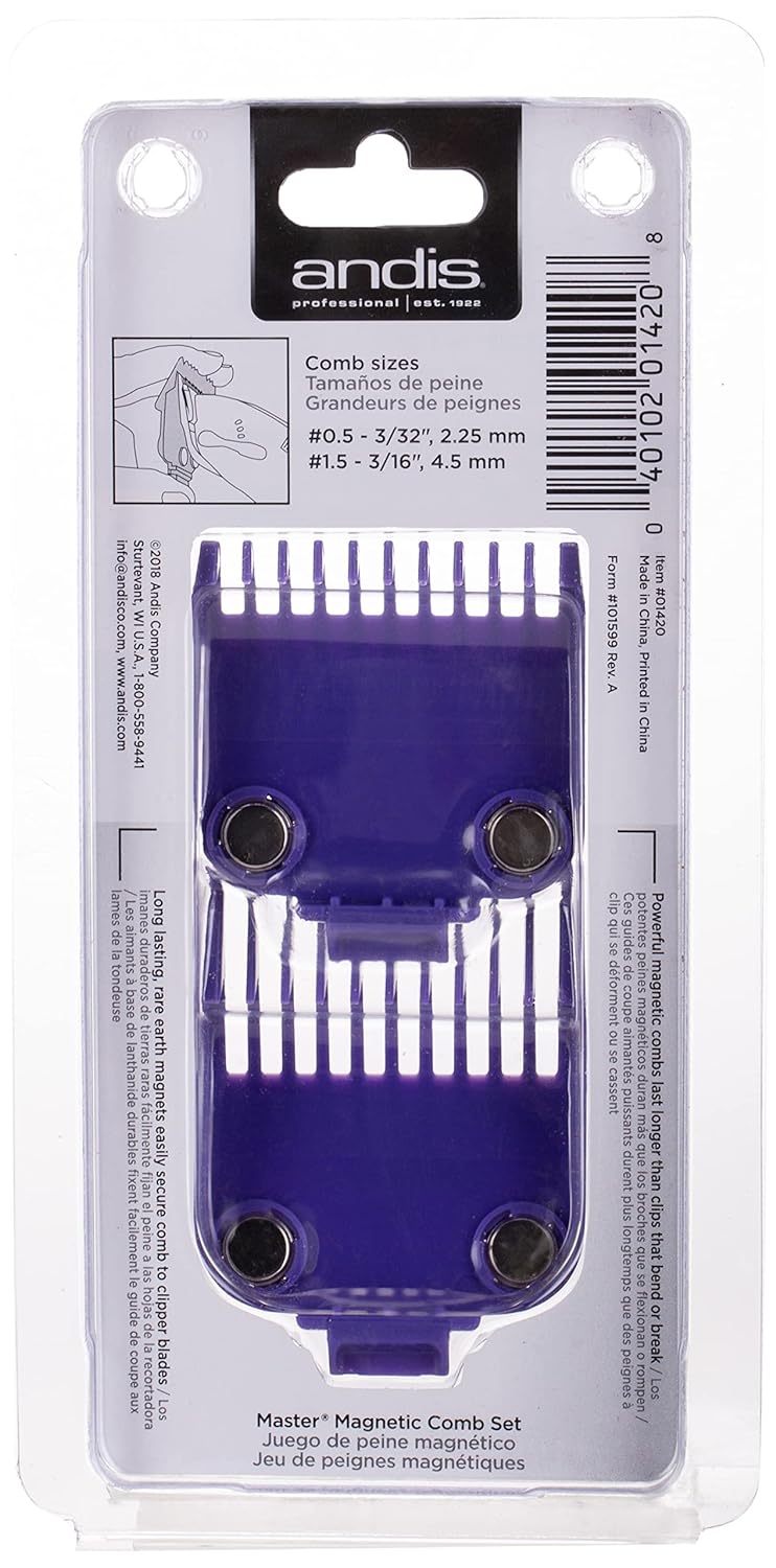 SUPERIOR QUALITY: Crafted with high-quality materials, these magnetic combs are designed to withstand frequent use, ensuring long-lasting performancePREMIUM MAGNETIC COMB SET: Enhance your andis master clipper with this dual-pack magnetic comb set, featuring two versatile sizes (0.5 & 1.5)EASY CLIPPER ATTACHMENT: Effortlessly attach and secure the magnetic combs to your andis master clipper for quick and precise haircutsPRECISION CUTTING LENGTHS: Achieve consistent and professional haircuts with the 0.5 (3/32") and 1.5 (3/16") magnetic combs, suitable for various styling needsVERSATILE STYLING OPTIONS: With two different sizes, this magnetic comb set allows you to easily create a wide range of hairstyles and hair lengthsThe Andis 2-Magnet Attachment 2 Combs, 0.5", 1.5" each come with 2 magnets for extra holding power. These combs fit the Master Clipper Series, MBA, MC-2, ML, RACA, PM1 and PM4