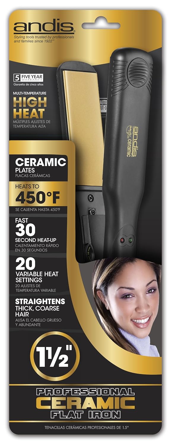 Andis 1.5-Inch High Heat Ceramic Hair Flattening Iron, Black (67770)