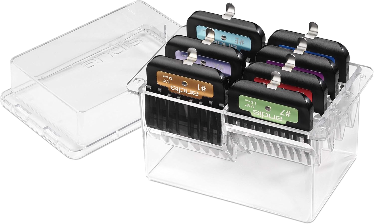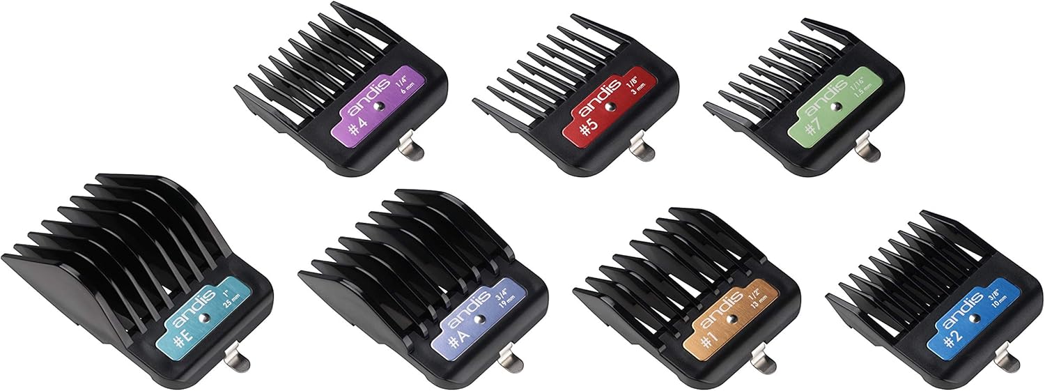 Andis 33655 Premium Clip Animal Comb Set β Built With Plastic, Includes 7 Color Coded Combs Of Different Sizes, Metal Clip To Attach Comb - Fits Ultra Edge & Ceramic Edge Blades, Multicolor