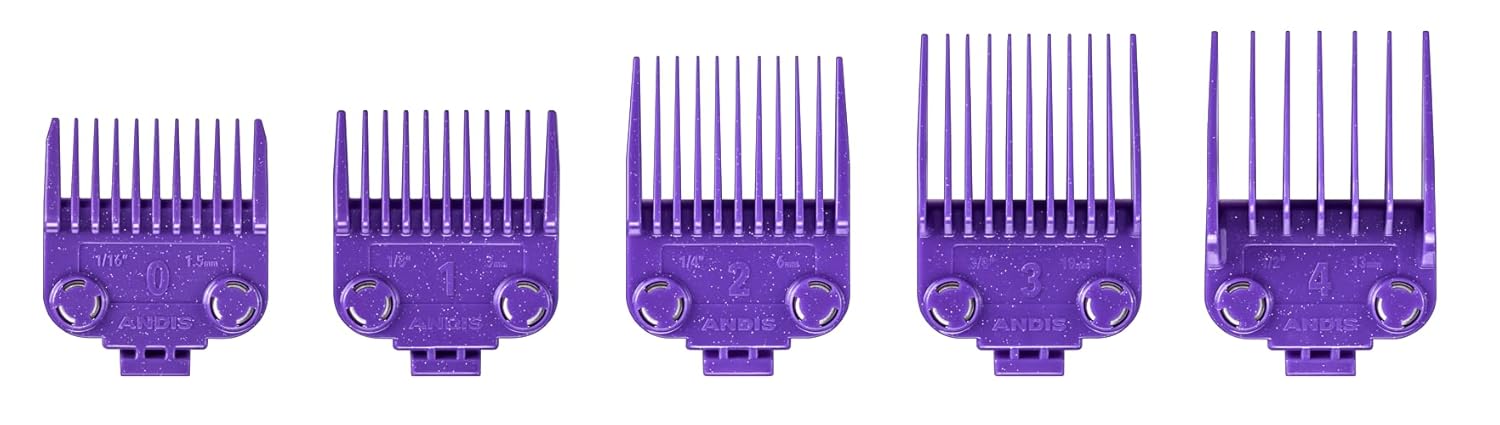 Enhanced With Patented Andis Magnetic Technology, Each Sparkling Purple Comb Snaps Onto Clippers Easily While Showing Off Your Vibrant Personality