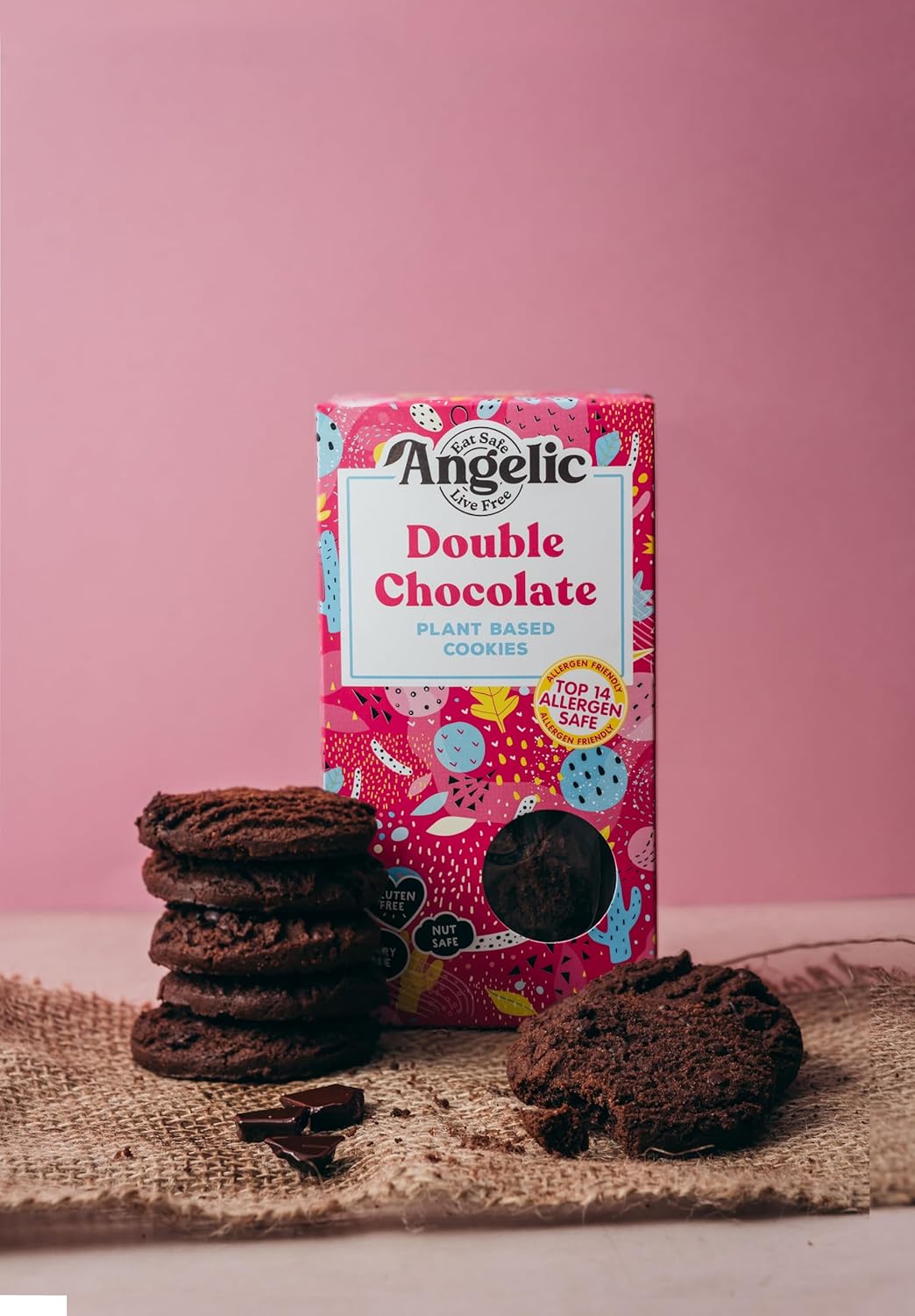 Angelic Free From 3 Mixed Box Vegan & Gluten Free Cookies. 3 Boxes Of Dairy, Nuts, Soya, Egg, Peanut Free Biscuits. Allergy Safe Snacks. Chocolate Chip, Double Chocloate And Ginger And Chocolate