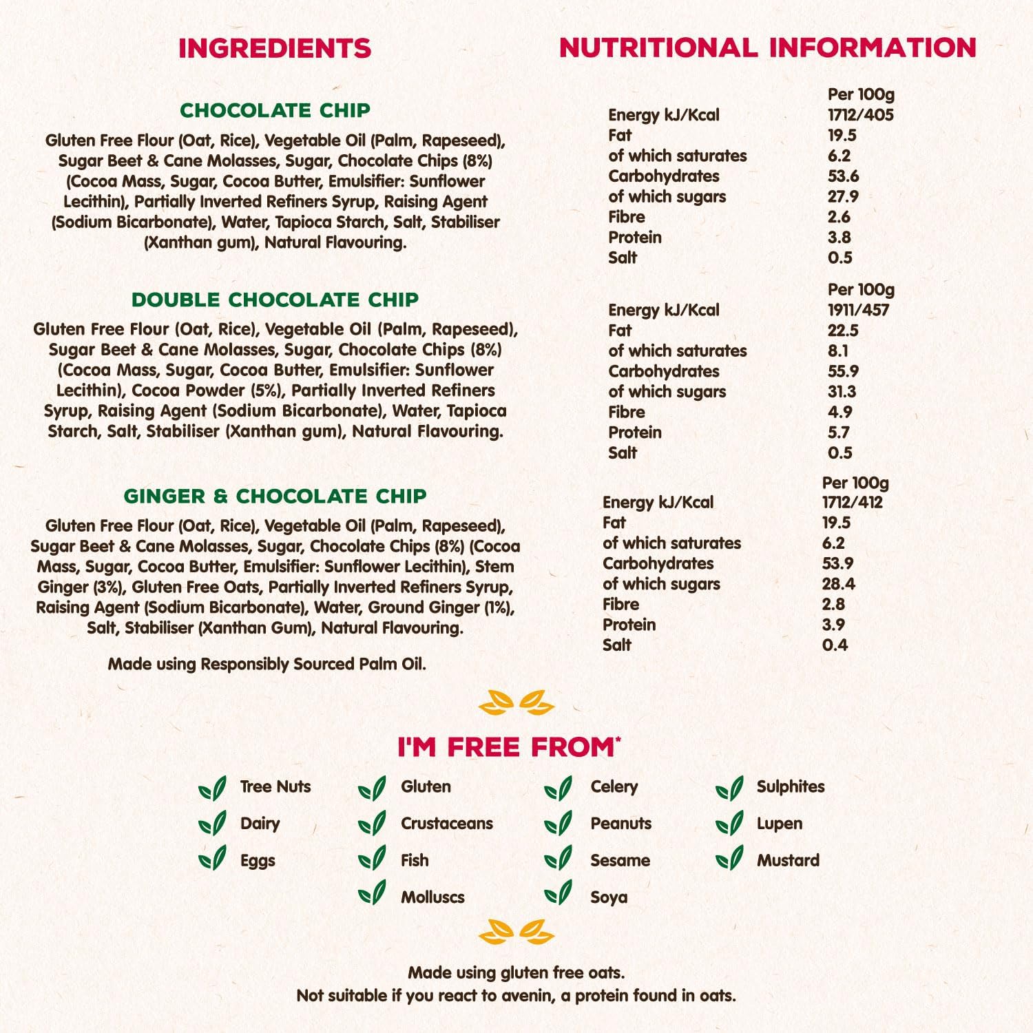 Angelic Free From 8 Pack Vegan & Gluten Free Cookies – Mixed Flavours (3 Chocolate Chip, 3 Double Chocolate, 2 Ginger & Chocolate Chip) – Allergen Safe, Dairy, Nut, Soya & Egg Free