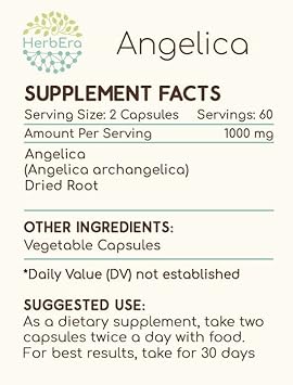 Angelica 120 Capsules, 500 Mg, Concentrated Liquid Drops Natural Angelica (Angelica Archangelica) Dried Root (120 Capsules)