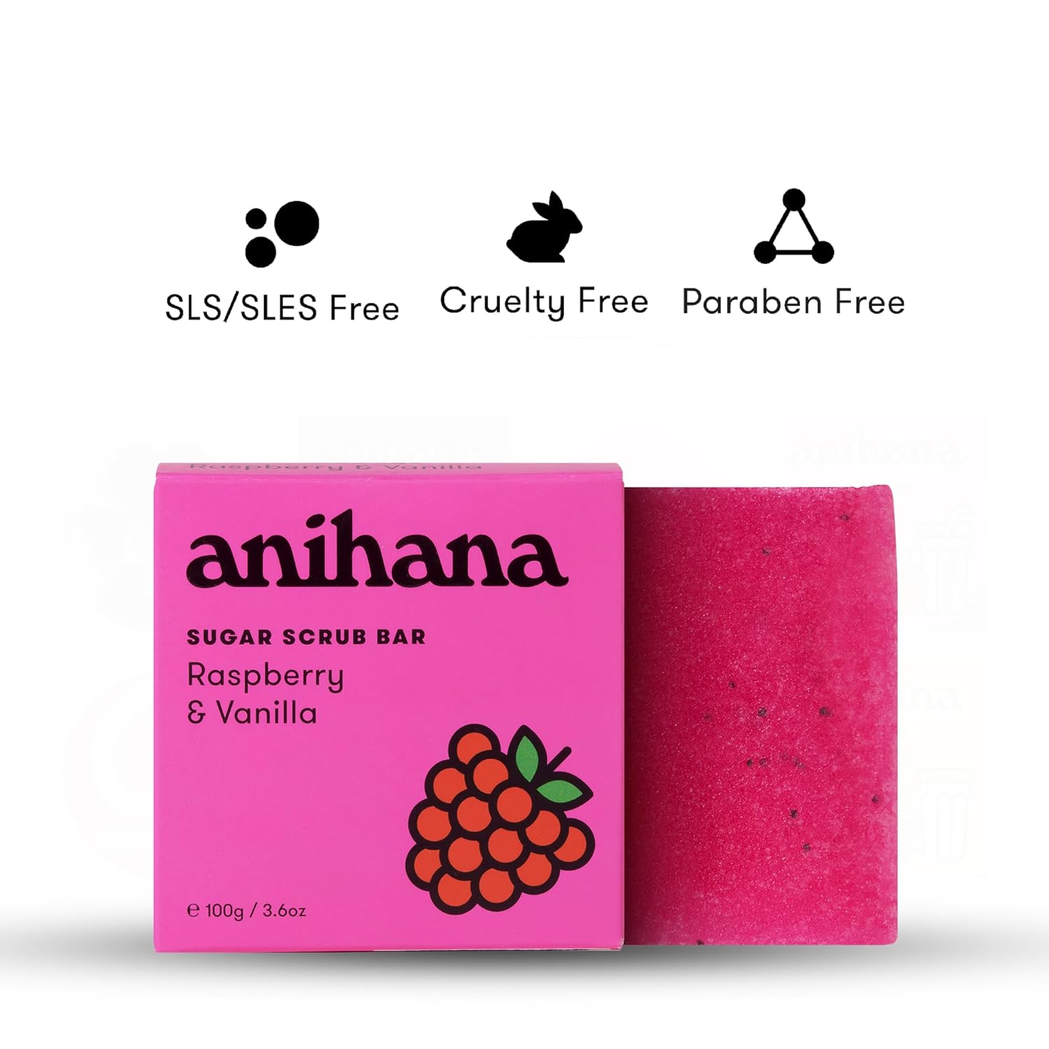 Anihana Sugar Scrub Soap Bar With Coconut Oil, Moisturizing, Gentle, Exfoliating Body Scrub, Refreshing Raspberry And Vanilla Scent, 3.6 Oz