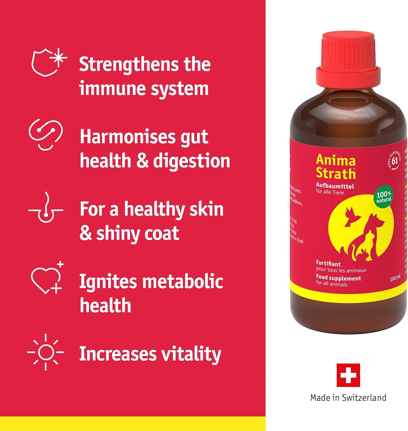 Anima-Strath Dog Vitamins And Supplements For Food, With 61 Nutrients, Vitamins & Minerals For Dogs & Cats, Herbal Yeast For Immune System & Digestive Care, Amino Acids & Prebiotic Qualities (100 Ml)