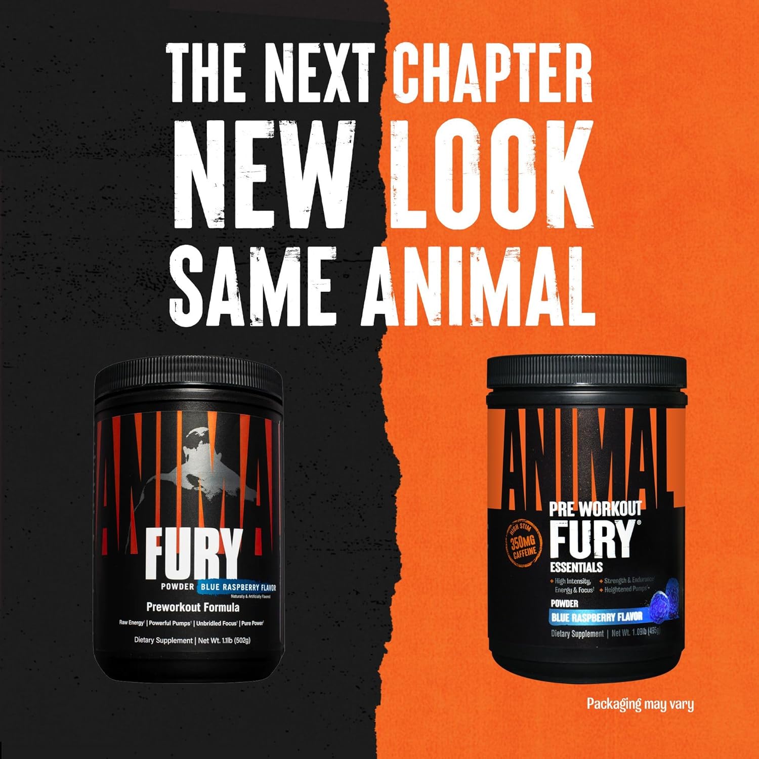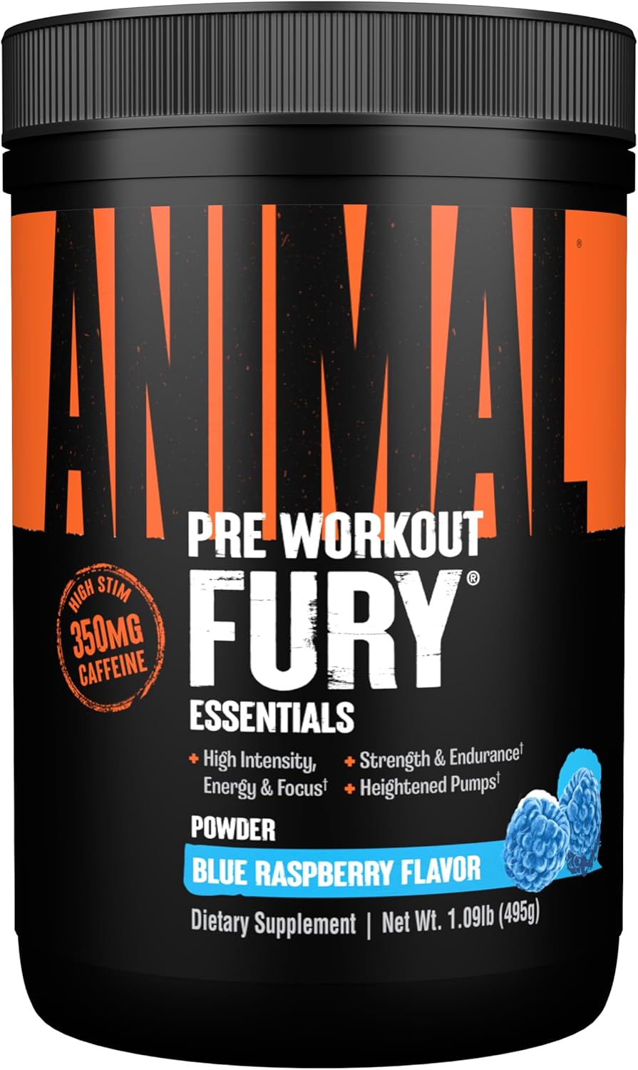 Animal Fury Pre Workout Powder - Energy And Focus Supplement With 5G Bcaa, 350Mg Caffeine Nitric Oxide Booster With Beta-Alanine, Preworkout For Men And Women, Blue Raspberry Flavor, 30 Servings