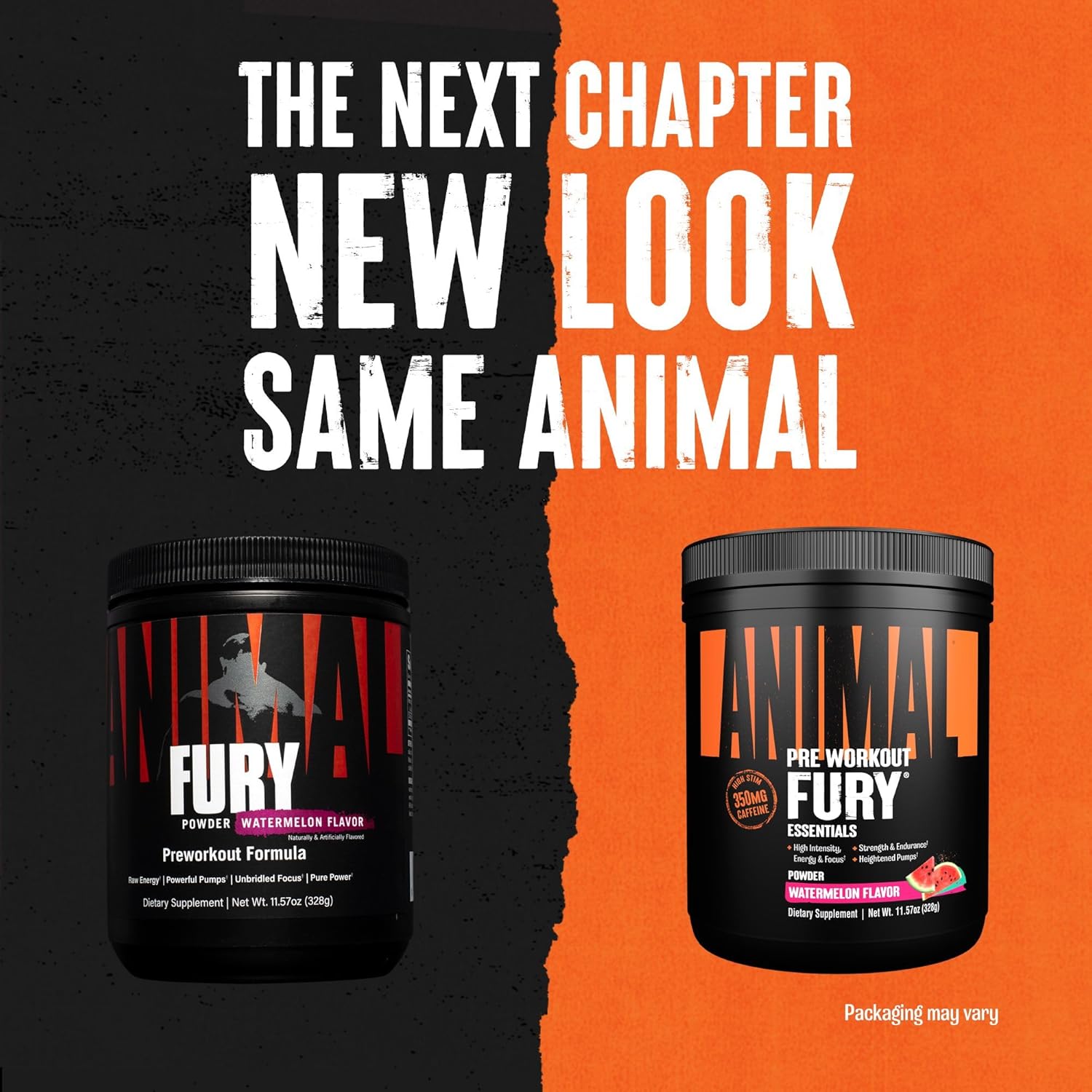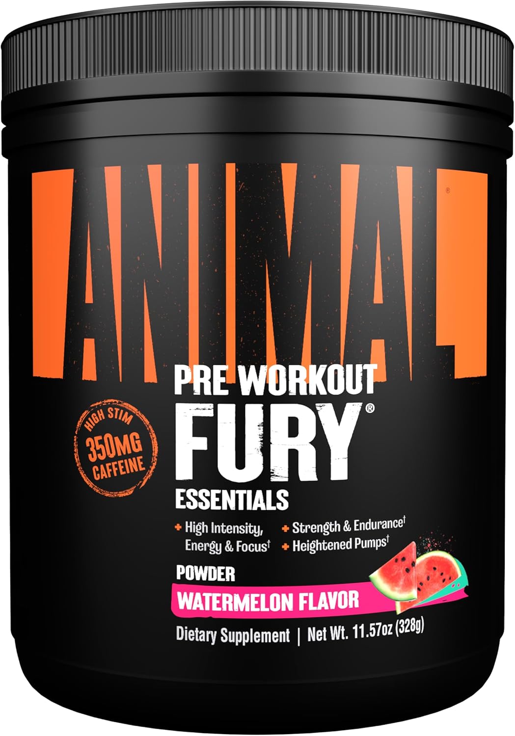 Animal Fury Pre Workout Powder - Energy And Focus Supplement With 5G Bcaa, 350Mg Caffeine Nitric Oxide Booster With Beta-Alanine, Preworkout For Men And Women, Watermelon Flavor, 20 Servings
