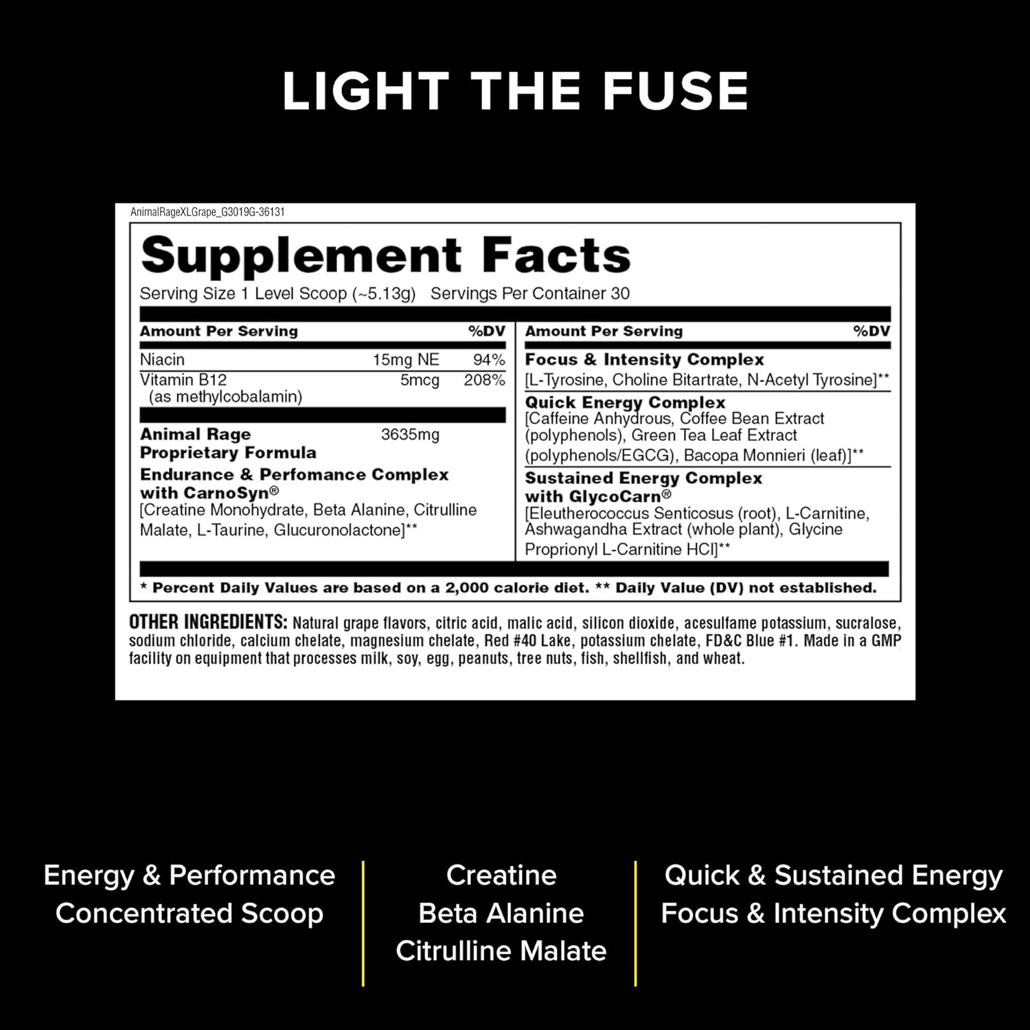 Animal Rage Xl - Pre Workout Ultimate Energy And Performance Stack, Grape Of Wrath, 30 (Am26)