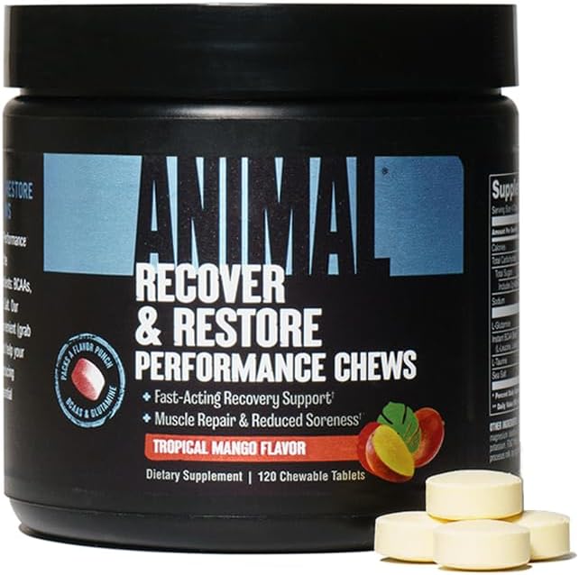 DESCRIPTION : Animal Recovery Chews, Fast Acting Recovery with BCAA, Taurine and Glutamine for Muscle Repair and Hydration - Convenient and Delicious Chews Format
