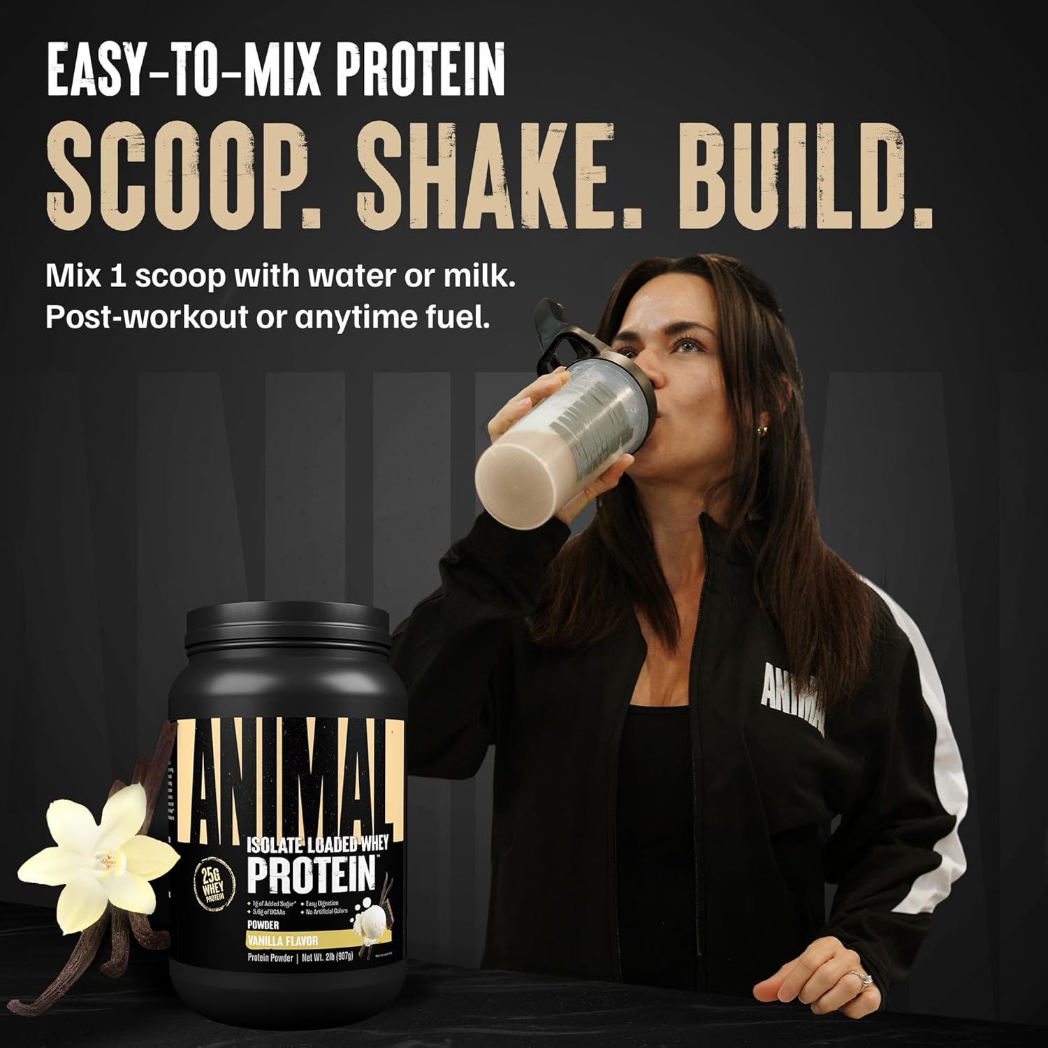 Animal Whey Isolate Protein Powder - Loaded For Pre & Post Workout Muscle Builder And Recovery With Digestive Enzymes For Men & Women - 25G Protein, Great Taste, Low Sugar - Vanilla 2 Lbs