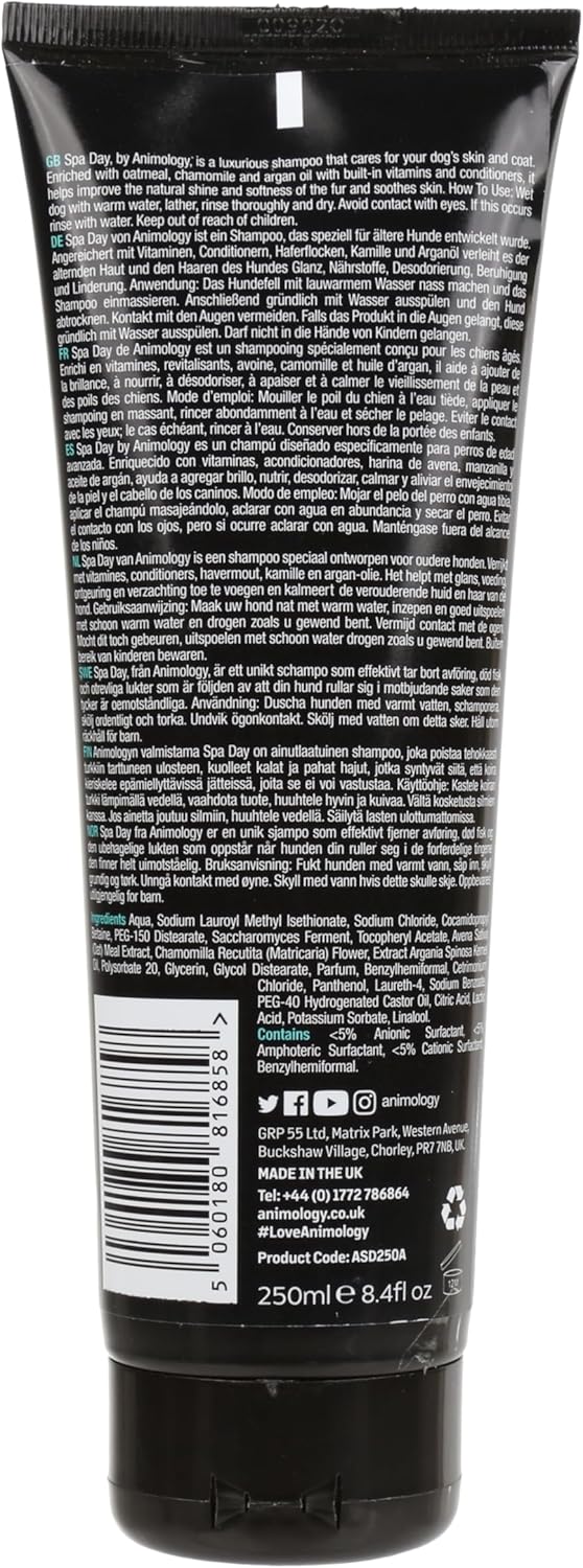 Animology Spa Day Dog Shampoo 250Ml | Easy Rince |Ph Balanced | Deodorising | Multi Vitamins Oatmeal, Chamomile & Argan Oil | 100% Vegan And Recyclable (14Ani71)