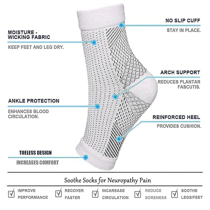 - Achilles Tendon Support: Alleviates discomfort around the Achilles tendon, promoting recovery from tendonitis. Enhances blood flow to the area, reducing swelling and pain.