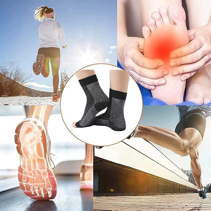 - Plantar Arch & Heel Support: Provides targeted compression to relieve pain from plantar fasciitis and heel pain. Helps stabilize the foot, reducing strain and improving walking comfort.
