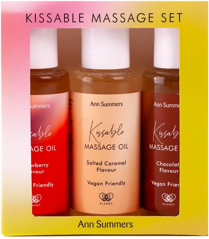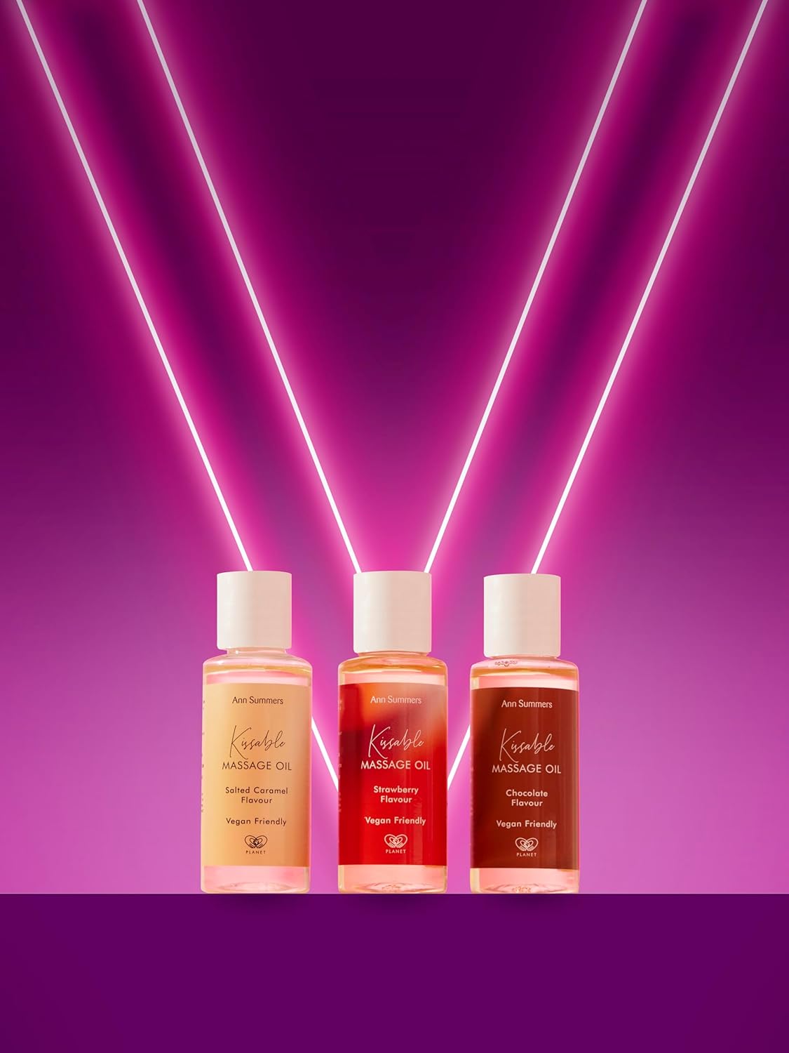 Ann Summers Flavoured Kissable Massage Oil Trio Set, 3 Mini Bottles Massage Oil In Strawberry, Salted Caramel And Chocolate Flavours, Moisturing Formula