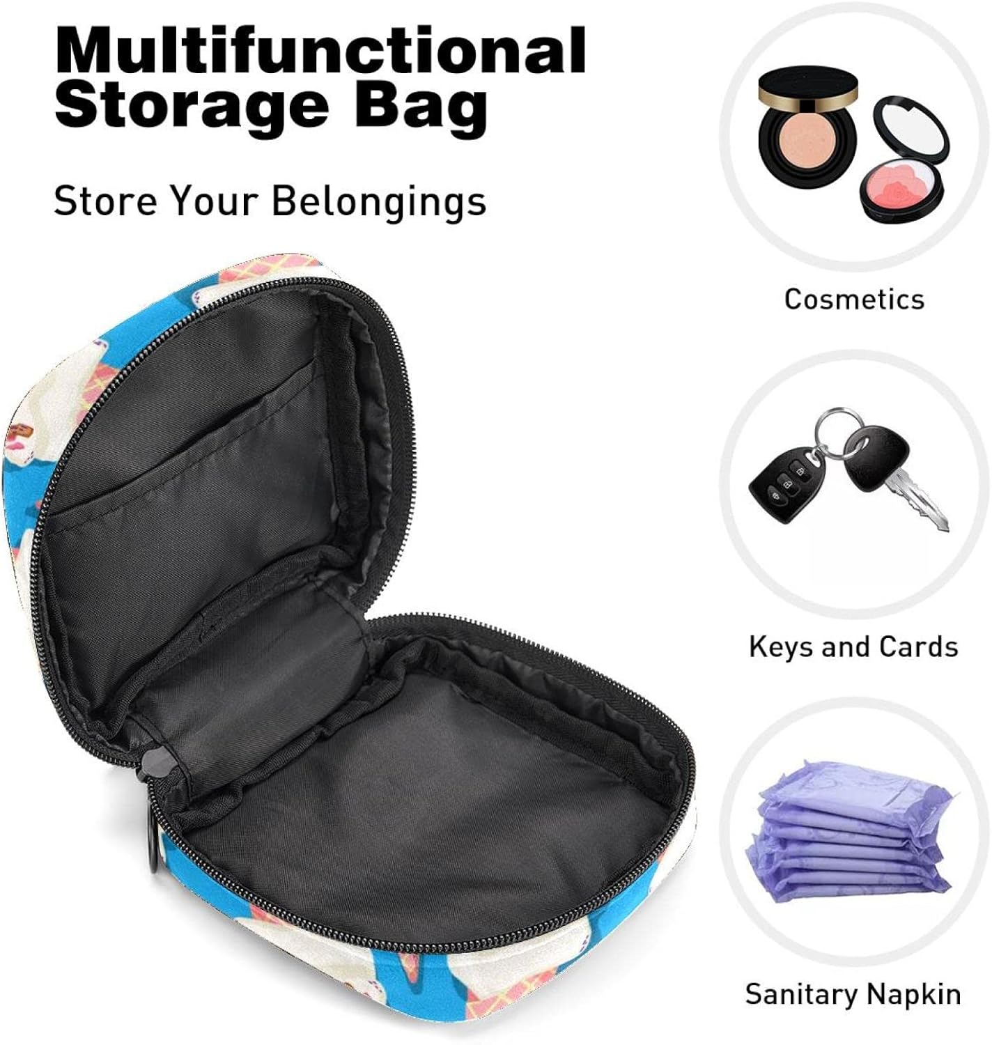Premium Material: Our Makeup Bag is made of soft and skin-friendly Flocking Cloth, Sponge, Oxford material. The period kit is small and cute, durable and dirt-resistant, washable, not easy to break and fade, can be applied for a long time