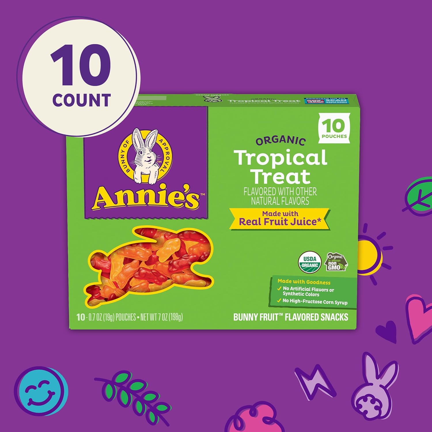 CONTAINS: One 7 oz box of Annie's Organic Tropical Treat Bunny Fruit Flavored Snacks; 10 pouches