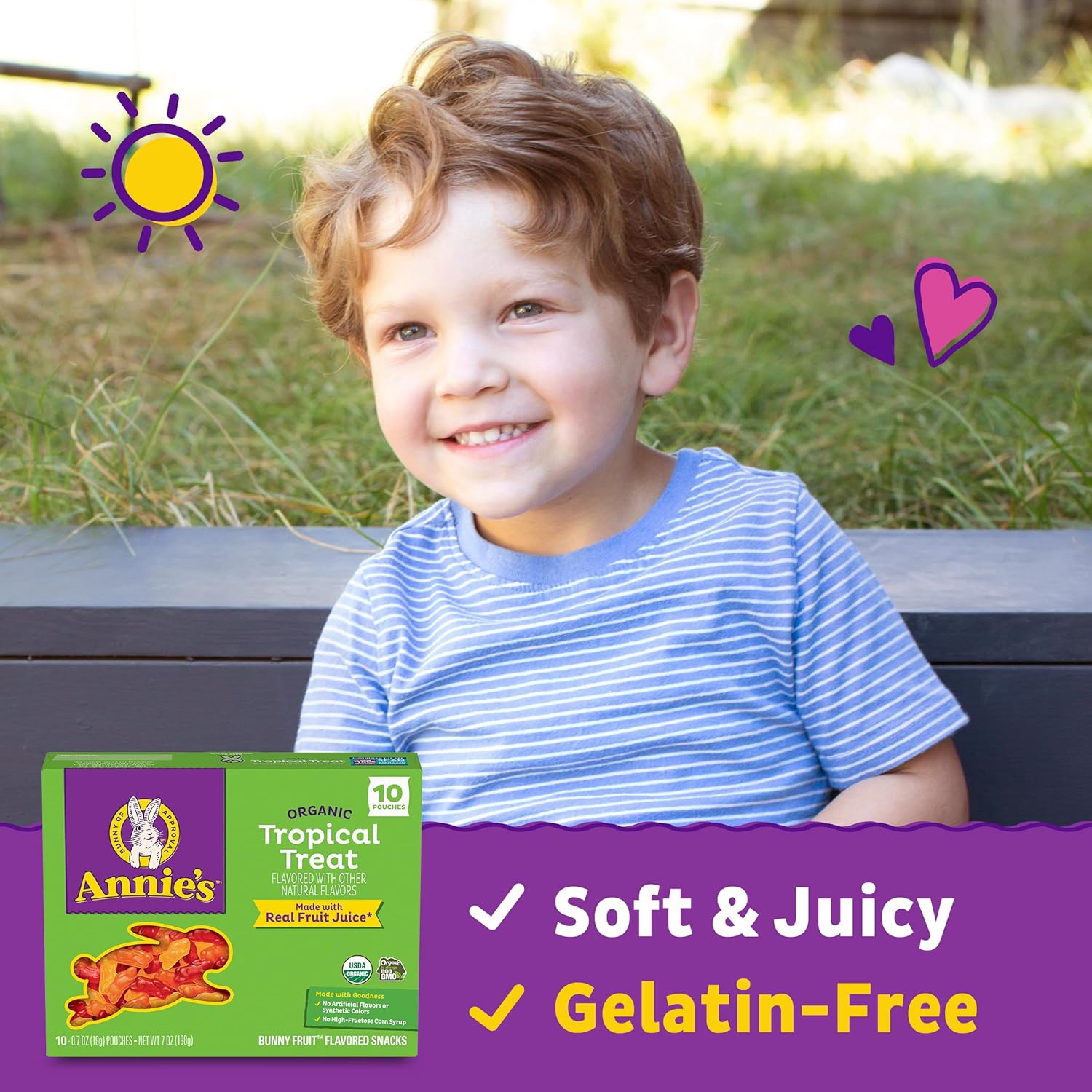 Annie'S Homegrown Gluten Free Organic Bunny Fruit Snacks, Tropical Treat, 5 Ct