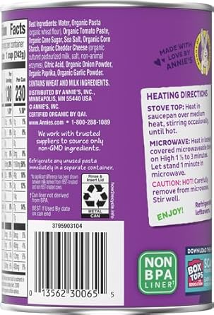 Product Description Annie'S Organic Bernie O'S Are Delicious And Tons Of Fun To Eat! This Canned Pasta Meal Is Made With Certified Organic Pasta And A Savory Tomato And Cheese Sauce Full Of Scrumptious Flavor And 100% Real Cheese. As Part Of A Quick, Kid-Friendly Dinner On The Table In Just A Few Minutes, Pack In A Thermos As Part Of An Easy School Lunch Or Indulge In A Bowl Of This Tasty Pasta For A Yummy Snack. When Feeding Your Family, Add A Sprinkle Of Joy And Hoppiness With Annie'S Canned Pasta Entrees. Annie'S Makes Kid-Approved Products In Over 20 Family-Friendly Categories — From Fruit-Flavored Snacks And Cereal To Mac & Cheese. For Busy Bunnies And Families On The Go, We Make Life A Little Easier And More Delicious By Sweetening-Up Packed Lunches Or By Adding To A Savory, Yummy Dinner. Annie’S Is Devoted To Spreading Goodness Through Nourishing, Tasty Foods And Kindness To The Planet. Amazon.Com Annie’S Homegrown Organic Bernie O’S Is A Canned Meal Which You Can Feed Your Kids Without Feeling Guilty About It. Made With Certified Organic Bunny And "O" Shaped Pasta And A Yummy Certified Organic Tomato And Cheese Sauce, Organic Bernie O'S Is A Fun, Easy Meal That You Can Feel Good About Serving. It Is Made With Only Vegetarian Ingredients And Is Free Of Animal Rennet And Trans Fat. This Is Sold In A Pack Of Twelve 15-Ounce Tins. About Annie'S Homegrown Annie’S Homegrown Was Co-Founded In 1989 By Annie Withey, An Organic Farmer, Wife, And Mother Of Two. Annie Started With The Intention Of Making All-Natural Macaroni And Cheese. However, The Company Gained A Lot Of Popularity And Annie’S Currently Does A Lot More Than That. Annie’S Homegrown Brings You A Wide Range Of Comfort Foods Such As Macaroni And Cheese, Snacks, And Cereal--All Made With Straight-From-Nature, Simple, And Organic Ingredients With No Icky Additives Or Pesky Preservatives. All Their Products Taste Great--Delight Yourself With Their Delicious Products Now! The Company Is Driven By A Team Of Folks Who Are Passionate About Three Things--Food, People, And The Planet. People At Annie’S Homegrown Always Strive For The Motto: “Eat Responsibly. Act Responsibly”