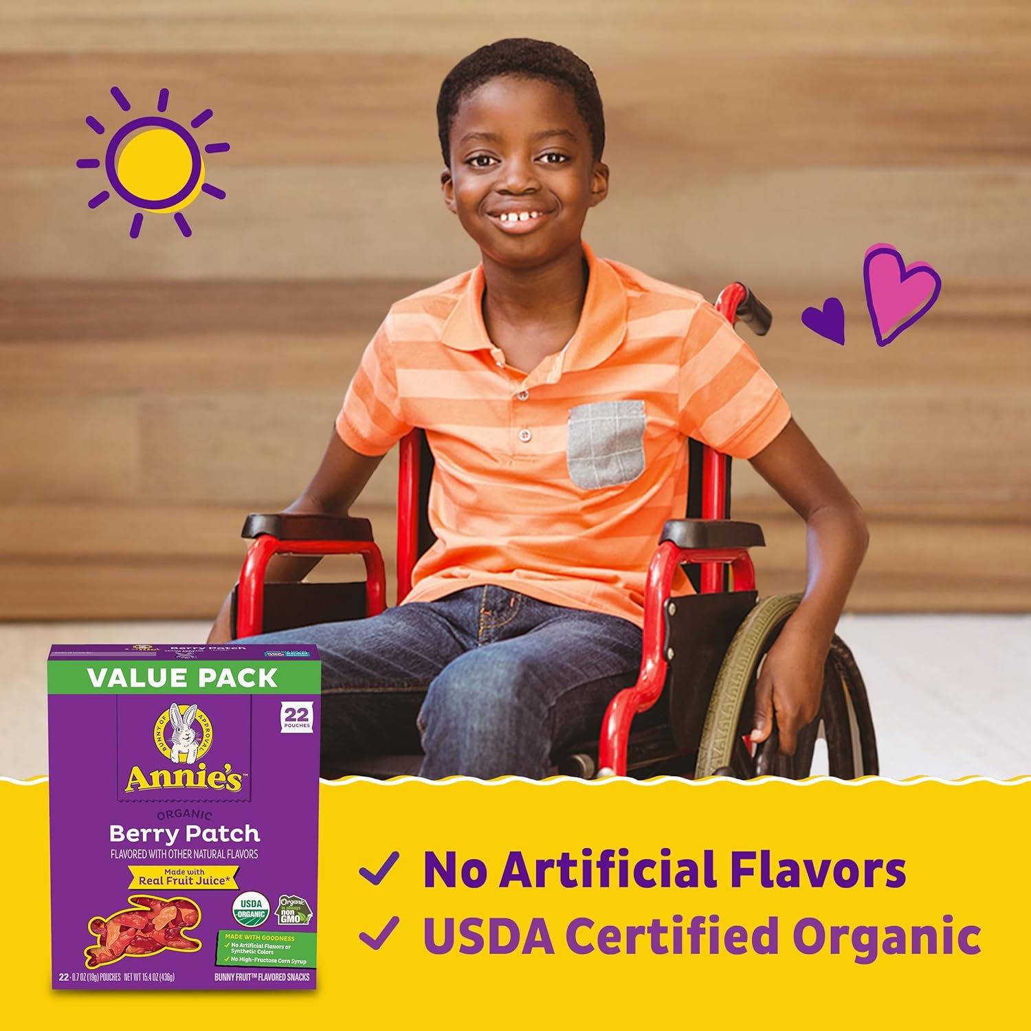 CONTAINS: One 15.4 oz Value Pack of Annie's Organic Berry Patch Bunny Fruit Flavored Snacks; 22 pouches