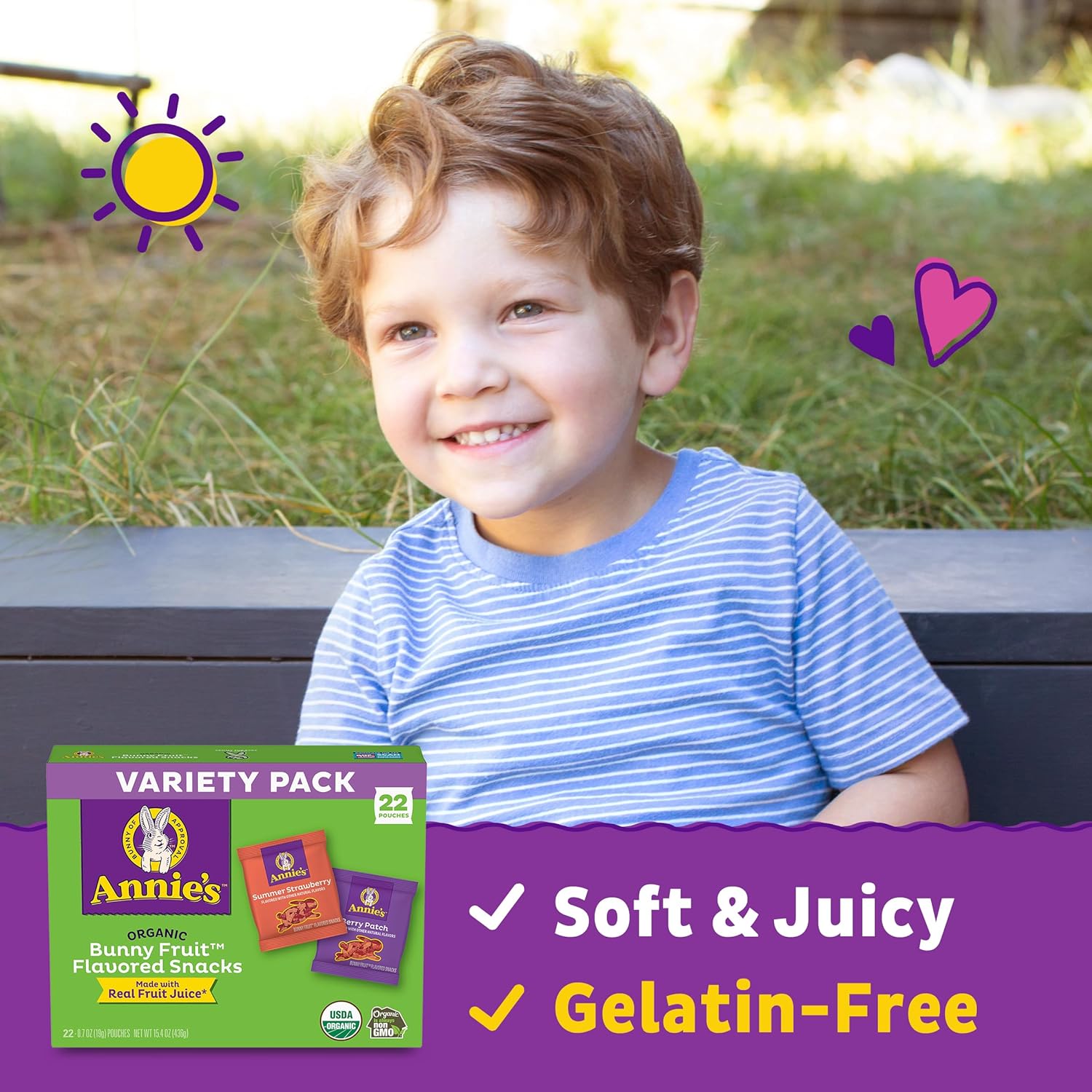 Annie'S Organic Bunny Fruit Snacks, Variety Pack, Gluten Free, 22 Ct, 15.4 Oz