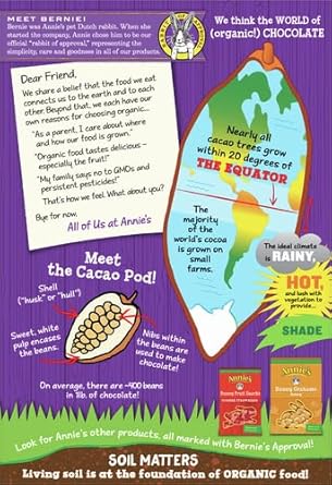 AnnieāS Chocolate Chip Cookie Bites May Be Small, But They Deliver Big On Taste, Fun And Chocolatey Goodness! With Chocolate Chips Made With Real Cocoa And Bite-Sized Yumminess, Kids And Adults Will Come Hopping To Devour These Scrumptious Sweet Treats. Best Of All, They DonāT Contain Any High-Fructose Corn Syrup, Artificial Flavors Or Synthetic Colors. These Bite-Size Treats Are The Perfect Addition To Lunches And Snack Bags For Kids And Teenagers Alike! Grab A Box Of Cookie Bites For Added Fun, Chocolate Flavor And Hoppiness At Snack Time. Annie'S Makes Products In Over 20 Family-Friendly Categories ā From Fruit-Flavored Snacks And Cereal To Mac & Cheese. For Busy Bunnies And Families On The Go, We Help Make Life A Little Easier And More Delicious By Sweetening-Up Packed Lunches Or By Adding To A Savory, Yummy Dinner. AnnieāS Is Devoted To Spreading Goodness Through Nourishing, Tasty Foods And Kindness To The Planet