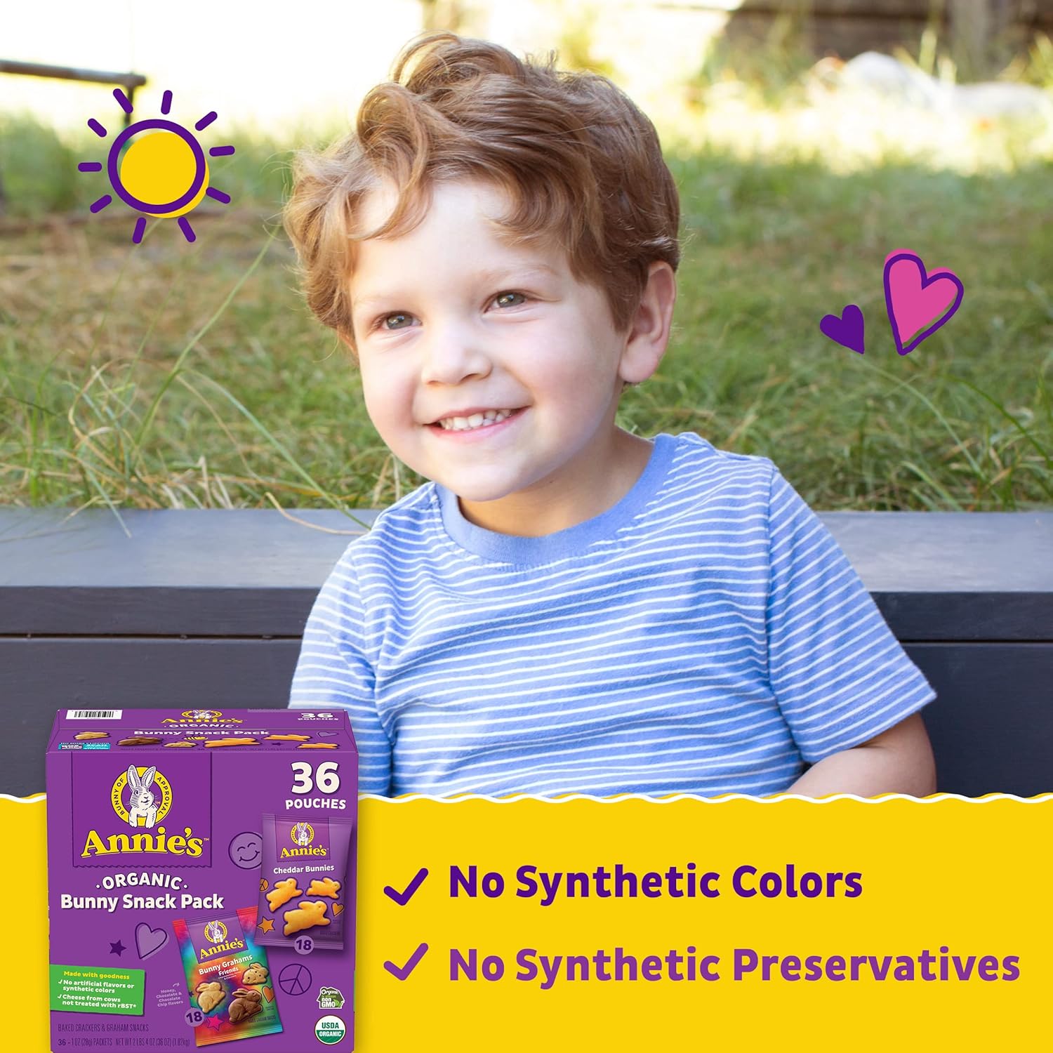 CONTAINS: 1 oz pouches, 36 ct (18 Cheddar Bunnies and 18 Bunny Grahams)