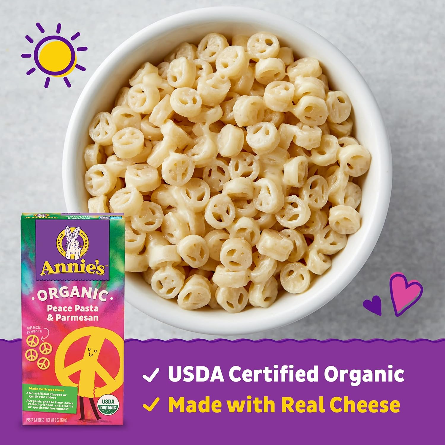 Annie'S Organic Macaroni And Cheese Dinner, Peace Pasta & Parmesan, 6 Oz. (Pack Of 12)