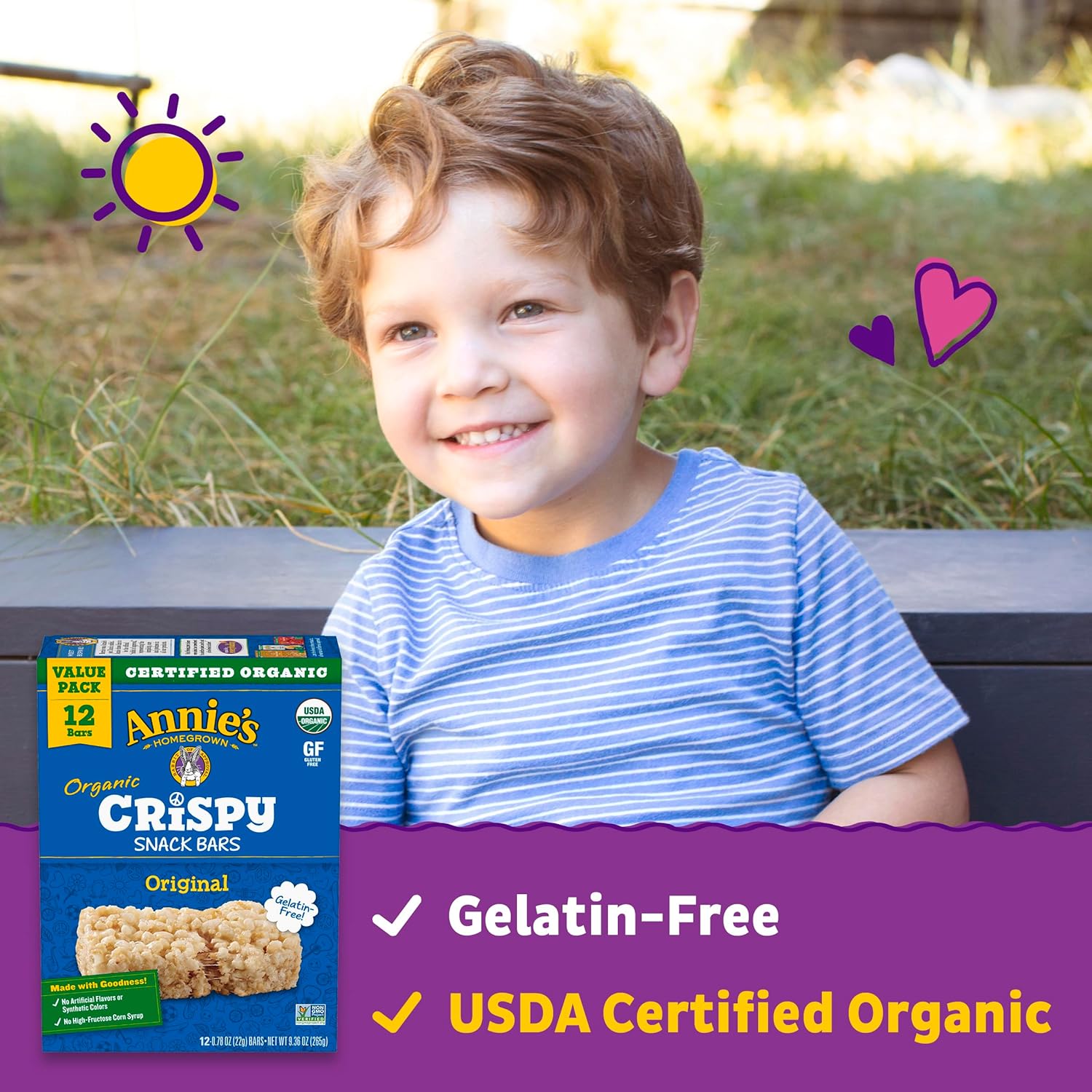 Annie'S Organic Original Crispy Snack Bars, Gluten Free, Value Pack, 12 Bars, 9.36 Oz