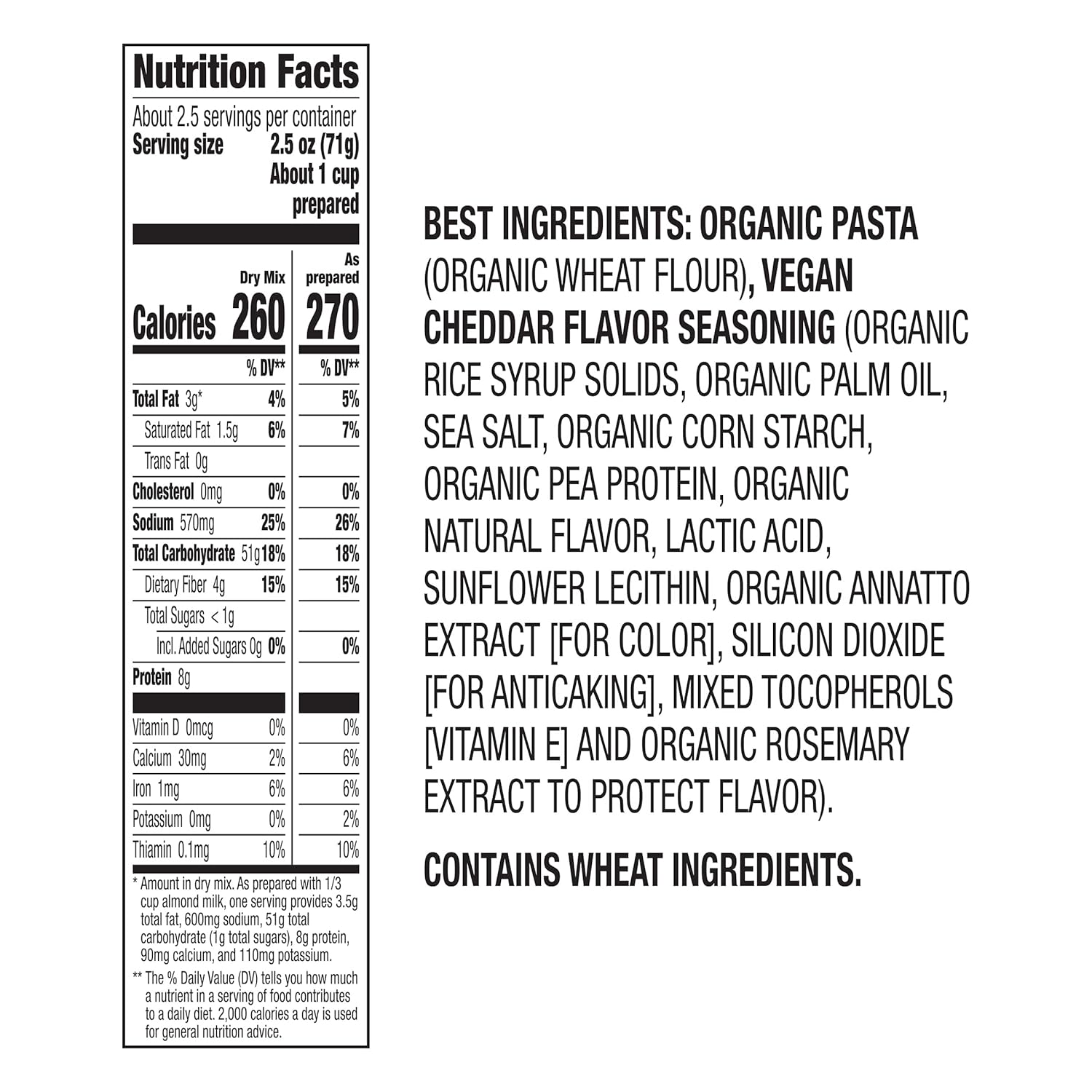 VEGAN MAC AND CHEESE: Boxed mac with cheddar flavor ready in about 10 minutes for a quick, easy, and great-tasting kids dinner addition