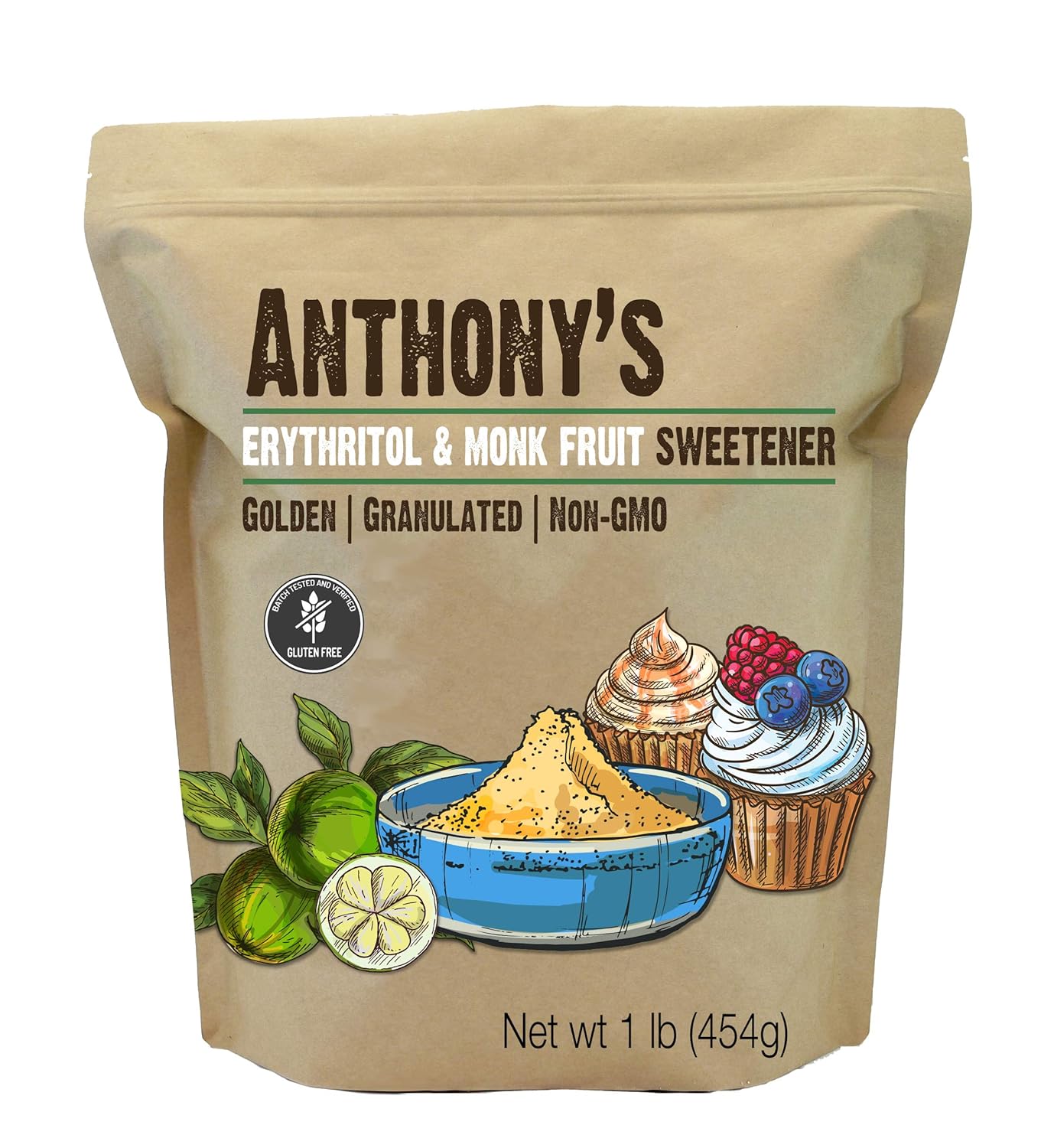 Anthony'S Erythritol And Monk Fruit Sweetener Golden, 1 Lb, Granulated, 1 To 1 Brown Sugar Substitute, Non Gmo, Keto Fri