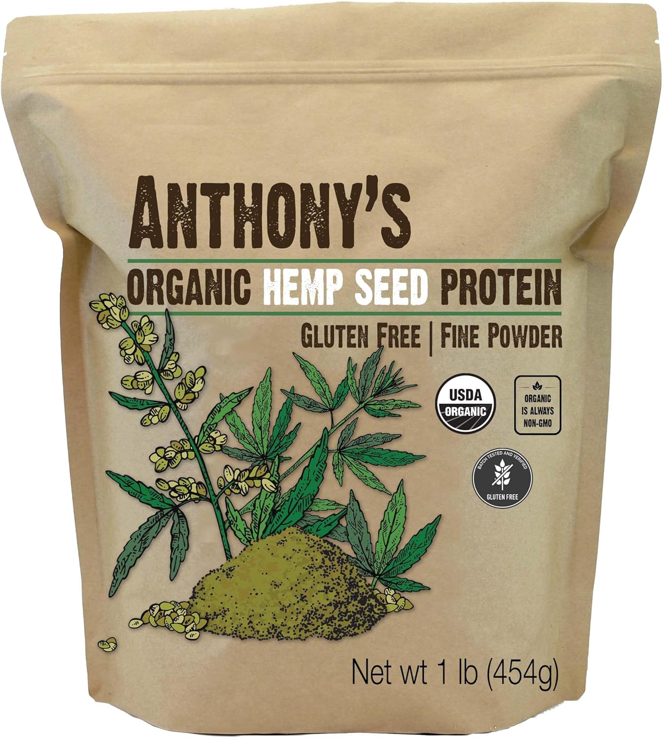 Anthony'S Organic Hemp Seed Protein, 1 Lb, Cold Pressed, Gluten Free, Non Gmo, Fine Powder