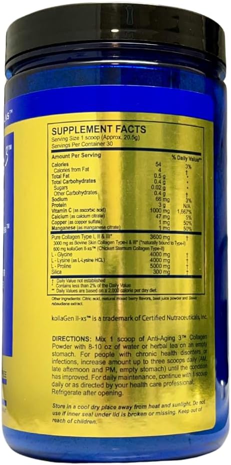 Anti-Aging 3 Collagen, Mixed Berry Flavor 600 Grams