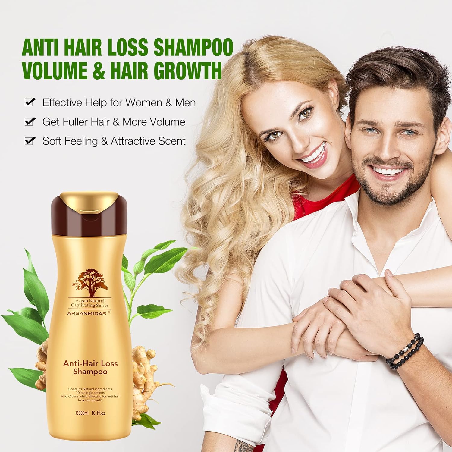 PURE NATURAL INGREDIENTS: Are you still agonize at your hair loss Don’t worry, ARGANMIDAS Anti-hair loss shampoo can solve your problem. It is natural regrowth shampoo, without pigment, no parabens (preservatives), It is rich in 3 precious and super concentrated active ingredients: ginger, Sophora flavescens root and Platycladus orientalis leaf plant extracts, with high concentration of permeability, enriched with blue copper peptide essence