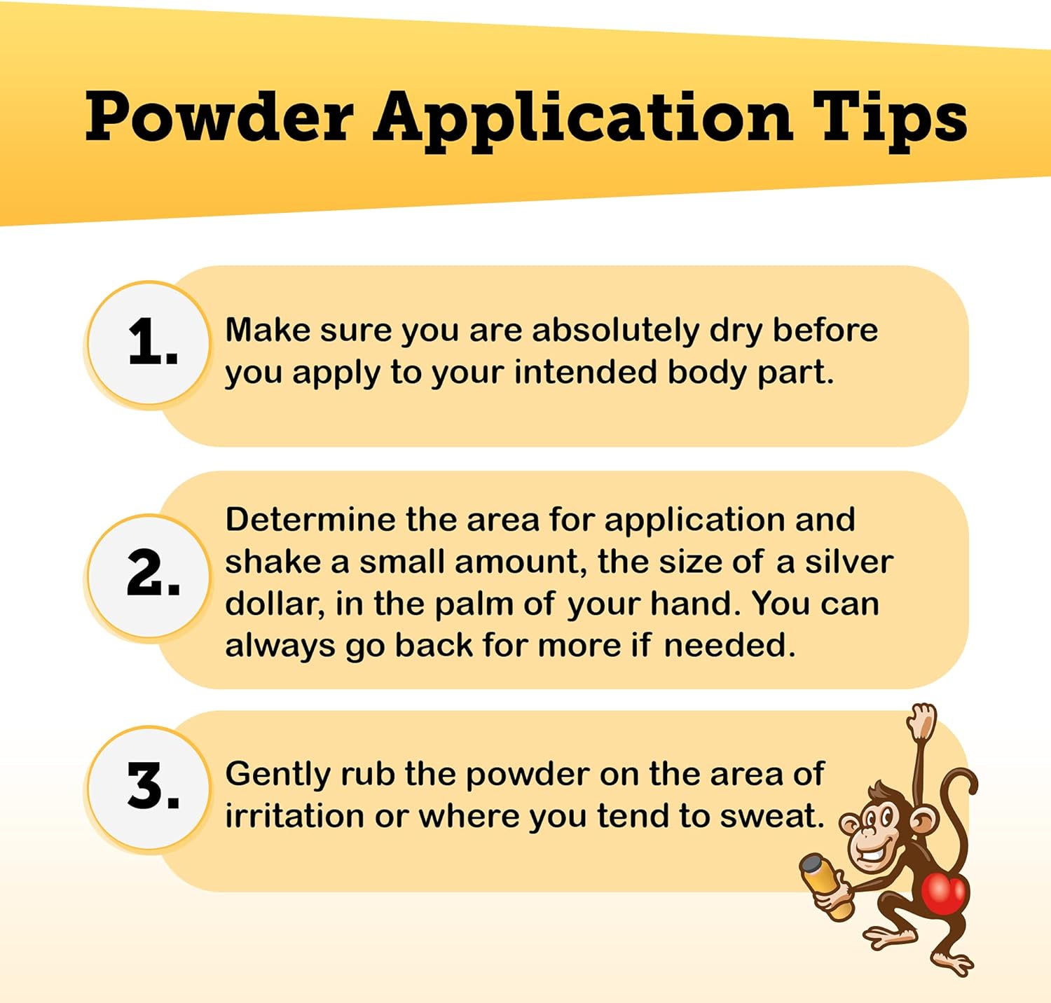 HIGH PERFORMANCE POWDER: Absorbs sweat and reduces skin irritation and chafing...anywhere10NEW AND IMPROVED FORMULA with added odor protection10SOOTHES SKIN: Therapeutic, long lasting anti-friction powder with calamine10FOR BUTT-BUSTING ACTIVITIES: Ideal for running, cycling, horseback riding, truck driving, hiking, any indoor/outdoor sports, etc10PLEASE NOTE: This product is sold by weight, not volume. Some settling will occur during shipping and handling