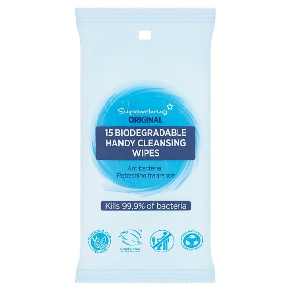 Superdrug Original Handy Cleansing Wipes Are Ideal For Everyday Use, At Home, Whilst Travelling And On-The-Go. Each Wipe, Made Of Biodegradable Plant Derived Fibres, Is Soft And Freshly Fragranced. These Antibacterial Wipes Gently Remove Dirt And Debris, Leaving Skin Feeling Soft, Clean And Residue-Free