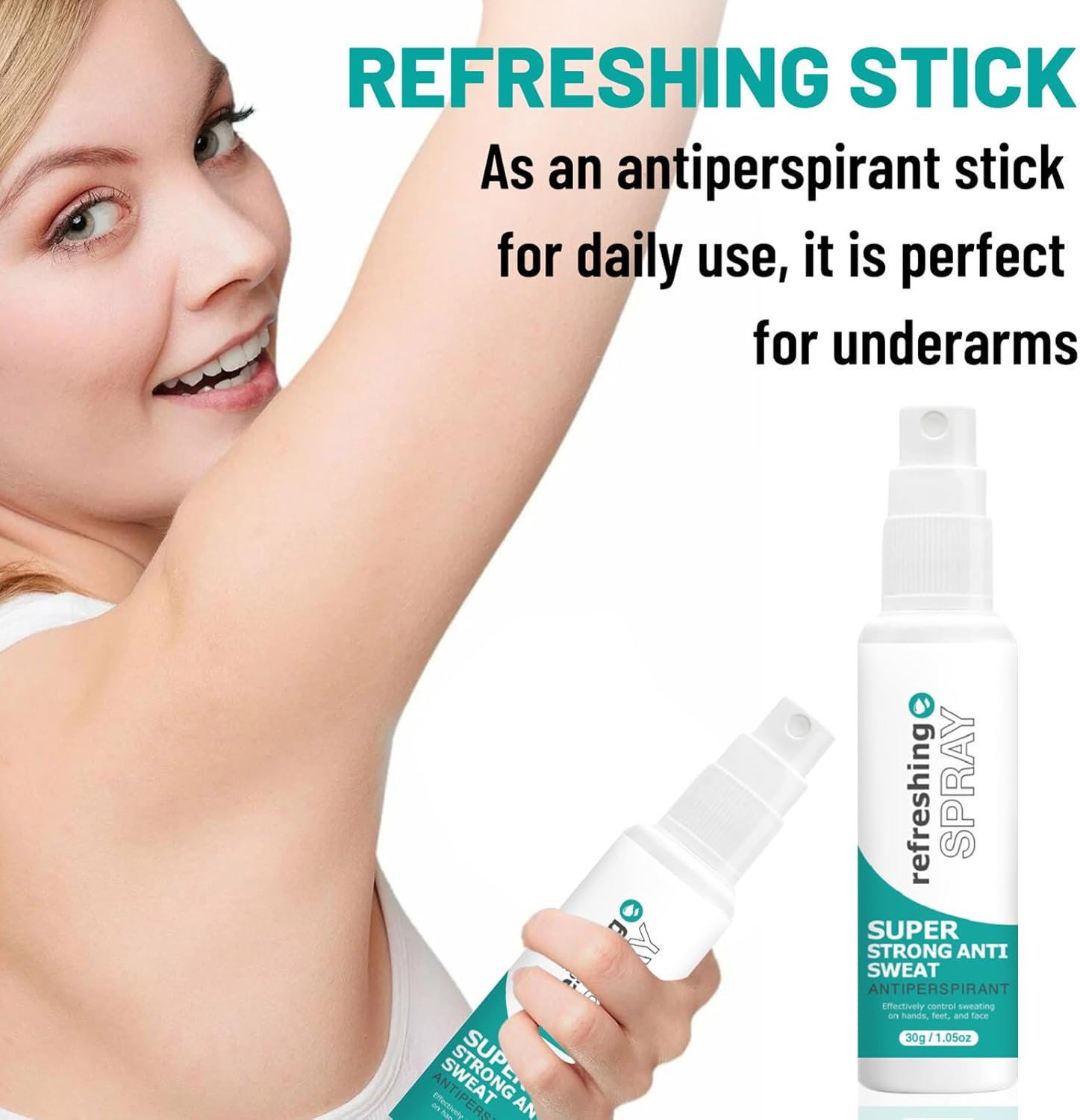 Product description Antiperspirant spray provides 30ml of effective protection against sweat for women and men. Its quick-drying formula ensures comfort while the pleasant fragrance keeps you refreshed throughout the day. Designed to be portable, it is perfect for home, travel, sports, business meetings, parties, or dance events. Use it on hands, feet, or armpits for dependable sweat control wherever you go. This versatile antiperspirant spray suits various needs with ease and convenience. Specification: Net capacity: 30ml Product size: about 10.5x3.1cm/4.13x1.22 inches Product List: 1 * Antiperspirant Spray Notes: Due to different lighting and screen settings, the product color may be slightly different from the picture. Due to the difference in manual measurement, please allow a 1-3cm difference in size. Ingredients refer to description,? Rapid Sweat Defense?: Designed to stop sweat secretion rapidly, this spray utilizes an efficient antiperspirant formula to maintain prolonged dryness, enhancing daily hygiene and confidence naturally,? All-Day Fragrance Boost?: Combines natural deodorizers to neutralize unpleasant sweat smells, while maintaining a delicate, yet lasting scent for continuous confidence all day,? No White Left?: Designed for convenience, this spray forms a quick-drying, transparent layer, without white marks, offering a refreshing and non-sticky touch to improve your daily routine,? Full-Body Antiperspirant Care?: Experience meticulous coverage that caters to diverse scenarios, providing seamless protection across your entire body area while banishing unwanted stickiness effectively,? Handy to Carry?: The antiperspirant spray stands out with its refined bottle design, offering easy portability and effortless placement in bags for ideal convenience