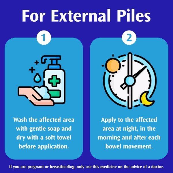 Product Information:Piles or haemorrhoids might not be a subject you feel comfortable talking about – but there’s no need to suffer in silence. Anusol haemorrhoid relief ointment provides a tried and trusted 4-way action treatment for painful and itchy piles – shrinking, relieving discomfort, soothing itching and reducing inflammation. The proven Anusol formula plus inflammation-fighting hydrocortisone helps calm irritation, soothe uncomfortable symptoms and prevent bacterial growth to promote healing. Designed for external piles; for adults over the age of 18 years,Features:This Haemorrhoid Relief Ointment Provides Proven Ingredients To Effectively Shrink Externally Affected Areas Effective Ingredients Are Delivered Directly Where They'Re Needed To Provide Easy Relief From Discomfort Anusol Relief Ointment Is Designed To Effectively Target Haemorrhoids With An Easy-To-Use And Fast-Acting Formula Anusol’S Proprietary Blend Of Ingredients Has Stood The Test Of Time In Providing Soothing Haemorrhoid Relief Suitable For Adults And Elderly,Warning or Restrictions:Children (under 18 years): Do not use. Do not use in pregnancy or breastfeeding. If you continually suffer from piles, if the condition is not improved, or if rectal bleeding occurs, consult your doctor. For external use only. Keep out of reach and sight of children,Product Specification:Active Ingredients per 100g: Hydrocortisone Acetate 0.25g, Bismuth Oxide 0.875g, Zinc Oxide 10.75g, Bismuth Subgallate 2.25g, Balsam Peru 1.875g, Benzyl Benzoate 1.25g Other Ingredients: Petroleum Jelly White, Calcium Hydrogen Phosphate, Lanolin Anhydrous, Cocoa Butter, Castor Oil, Kaolin Light, Magnesium Stearate,Product Uses:For anal application. Read the enclosed patient leaflet before use. Directions: Adults (over 18 years): Topical use only. Thoroughly cleanse the affected area, dry, and apply ointment on a gauze dressing. Use sparingly at night, in the morning, and after each bowel movement up to 4 applications per day. For internal conditions use the rectal nozzle provided, remove the nozzle cap and clean the nozzle after each use. Do not use for longer than 7 consecutive days,Recyclable:Plastic/Paper packaging