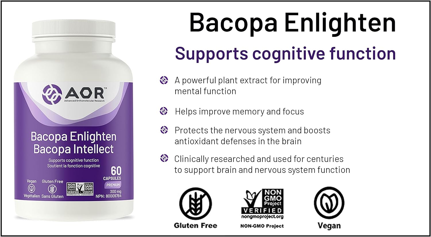 DESCRIPTION : AOR, Bacopa Enlighten, Ayurvedic Bacopa Monnieri Supplement for Cognitive Support, 300 mg, Vegan, 60 Capsules (60 Servings)