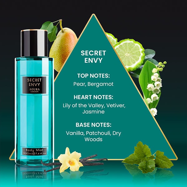 This seductive yet refreshing woody fruity fragrance opens with fruity fresh notes of sweet pear and bergamot. The heart has Lily of the Valley and vetiver, while the base warms with patchouli, dry woods and vanilla