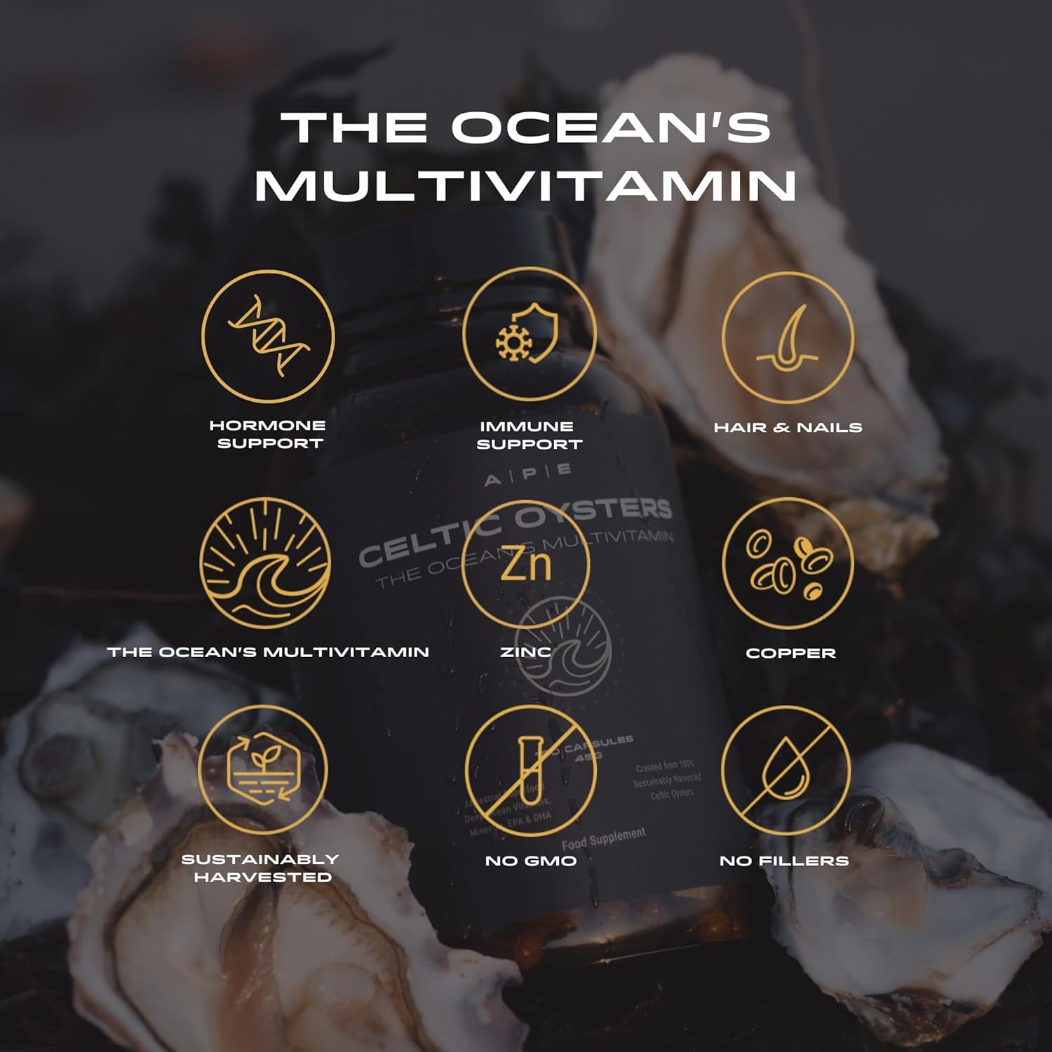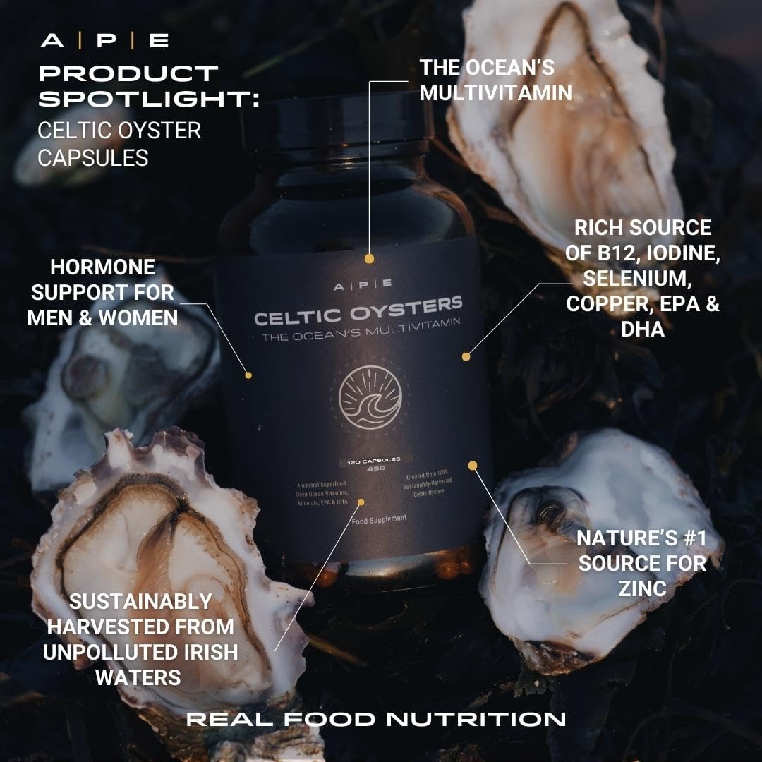 Ape Nutrition Celtic Oyster Capsules - Copper Zinc Iodine Selenium B12, Dha & Epa, Natural Multivitamin, Ancestral Supplement Uk, Sustainably Harvested, Oyster Extract, 300Mg Capsules