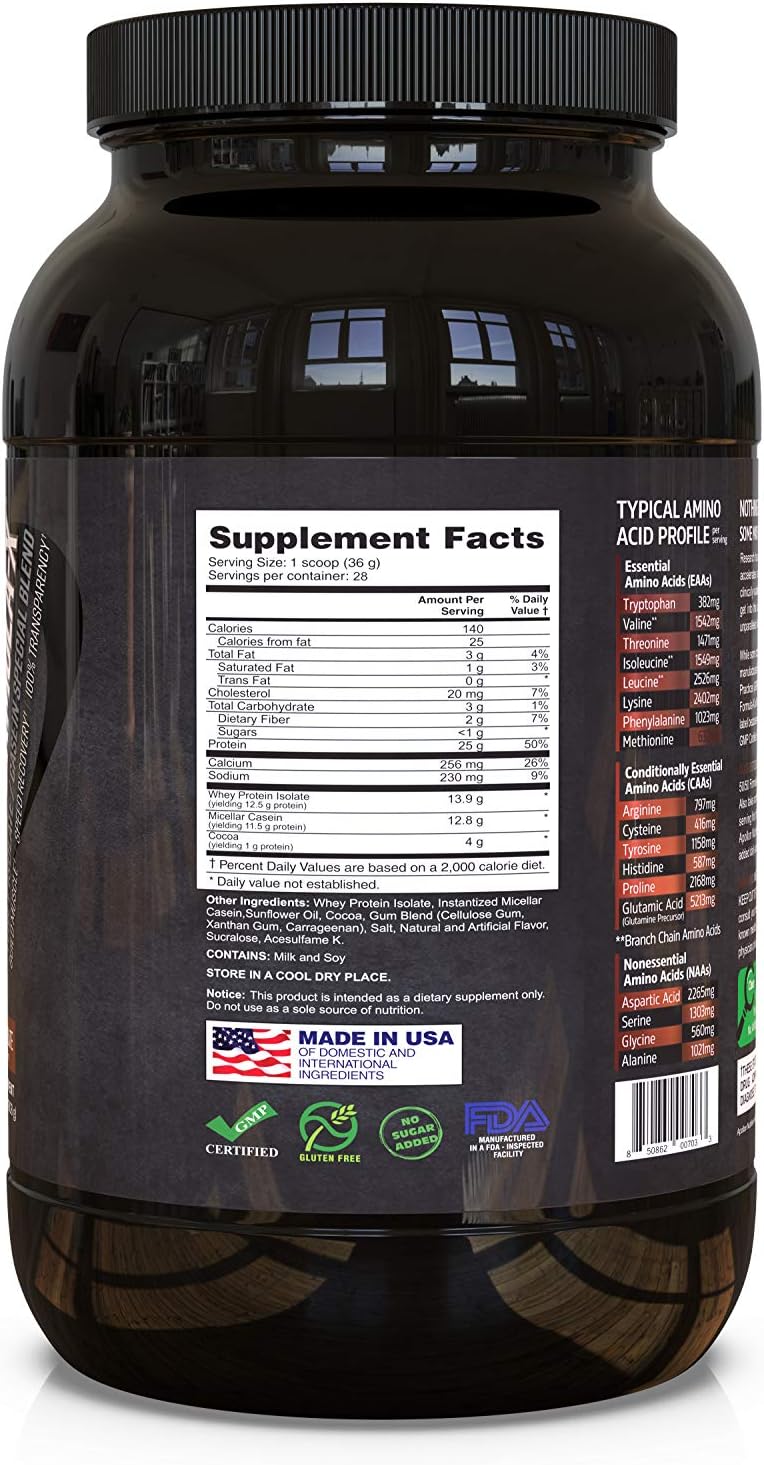 BULLET POINTS : 1 > 50% Whey Isolate/ 50% Casein
