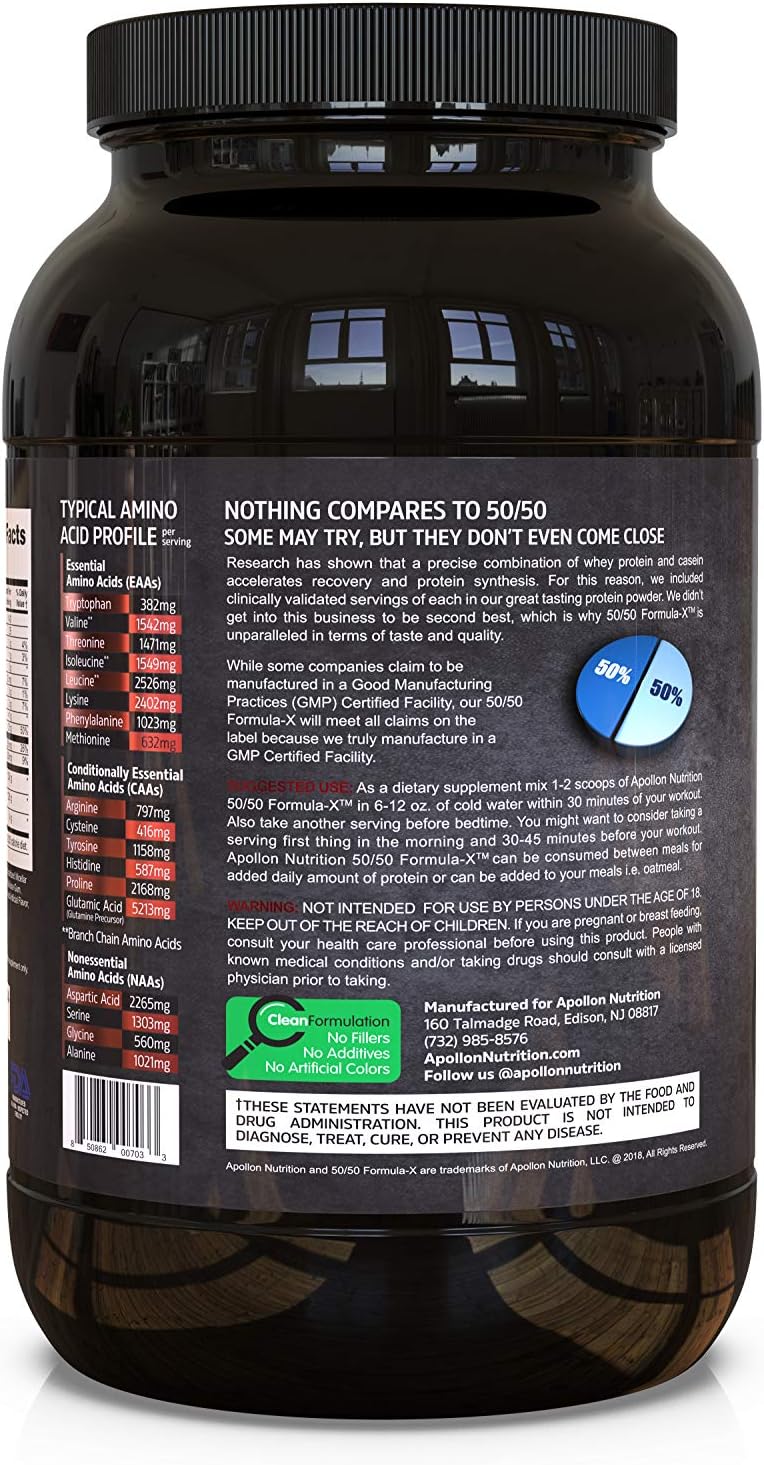 DESCRIPTION : Apollon Nutrition 50/50 Formula-X | Whey Isolate and Casein Protein | 2 lb (Dutch Chocolate)