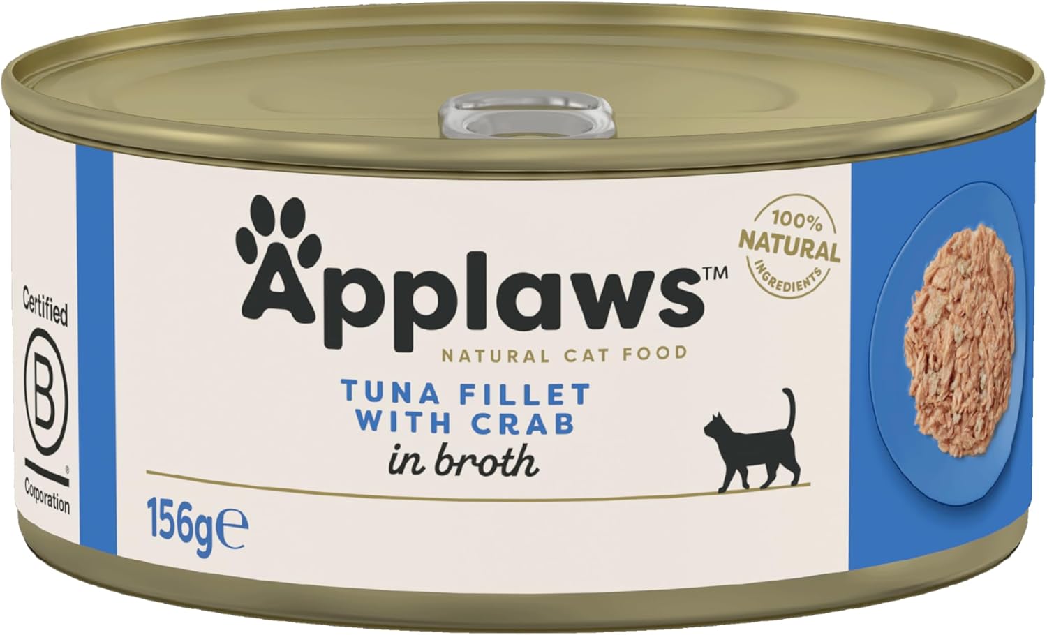Applaws 100% Natural Adult Wet Cat Food, Tuna Fillet With Crab In Broth 156 G Tin (Pack Of 24 Tins)2026Ce-A