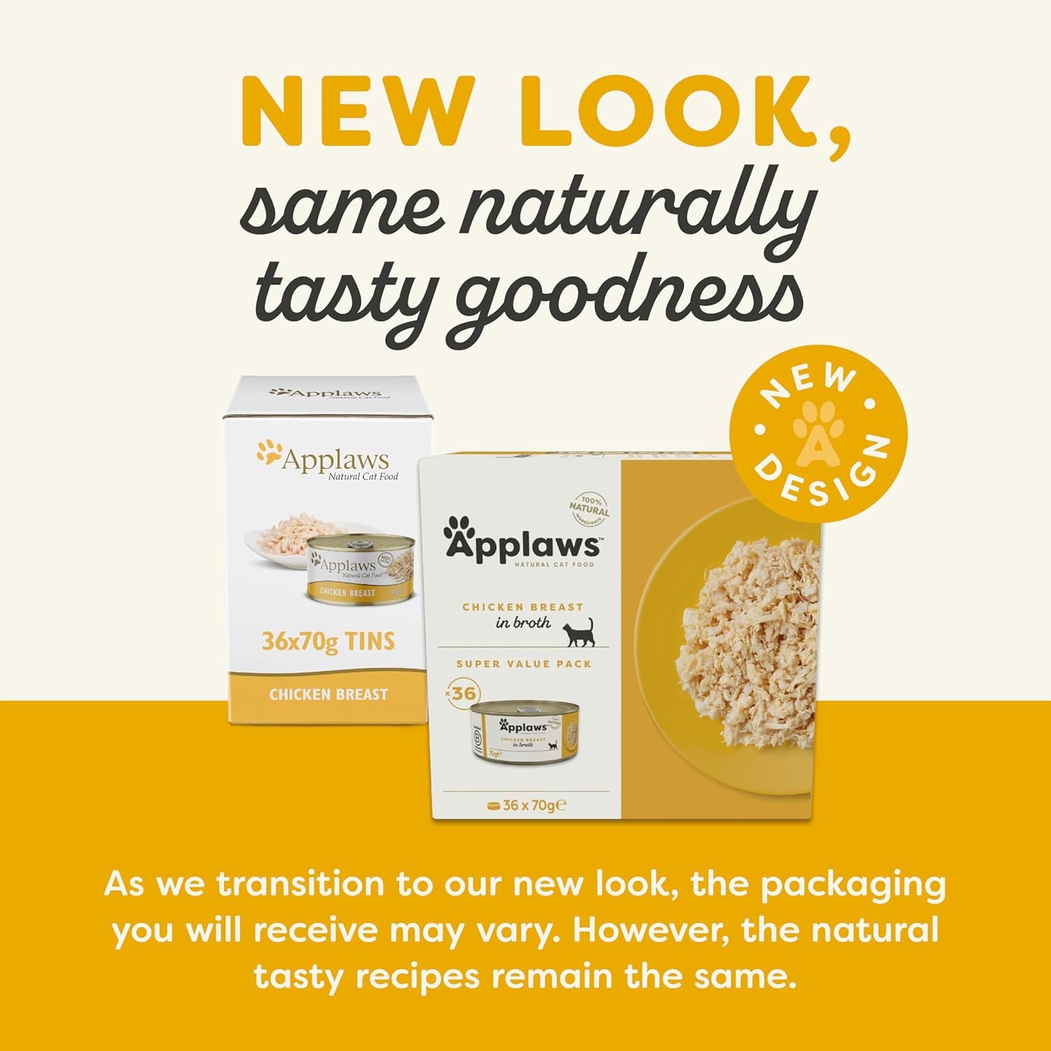 Applaws 100% Natural Wet Cat Food, Chicken Breast In Broth 70 G, Bulk Pack (36 X 70 G Tins)1061Ml-A